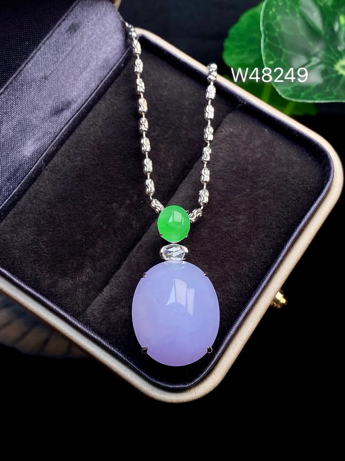 18k金钻镶嵌紫罗兰平安扣吊坠 玉质细腻 水润亮眼 色泽艳丽 整体尺寸31.2*21*10.2