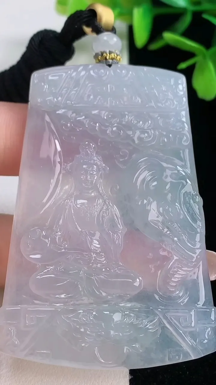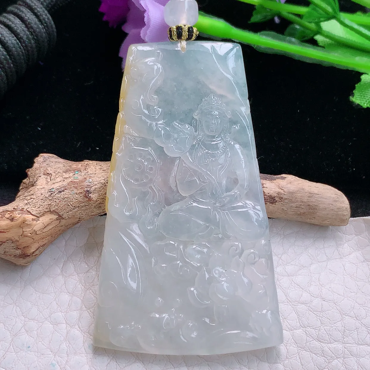 天然A货翡翠种飘花普贤菩萨吊坠,尺寸64-43-5.4,重量:41.31g 1月5日
