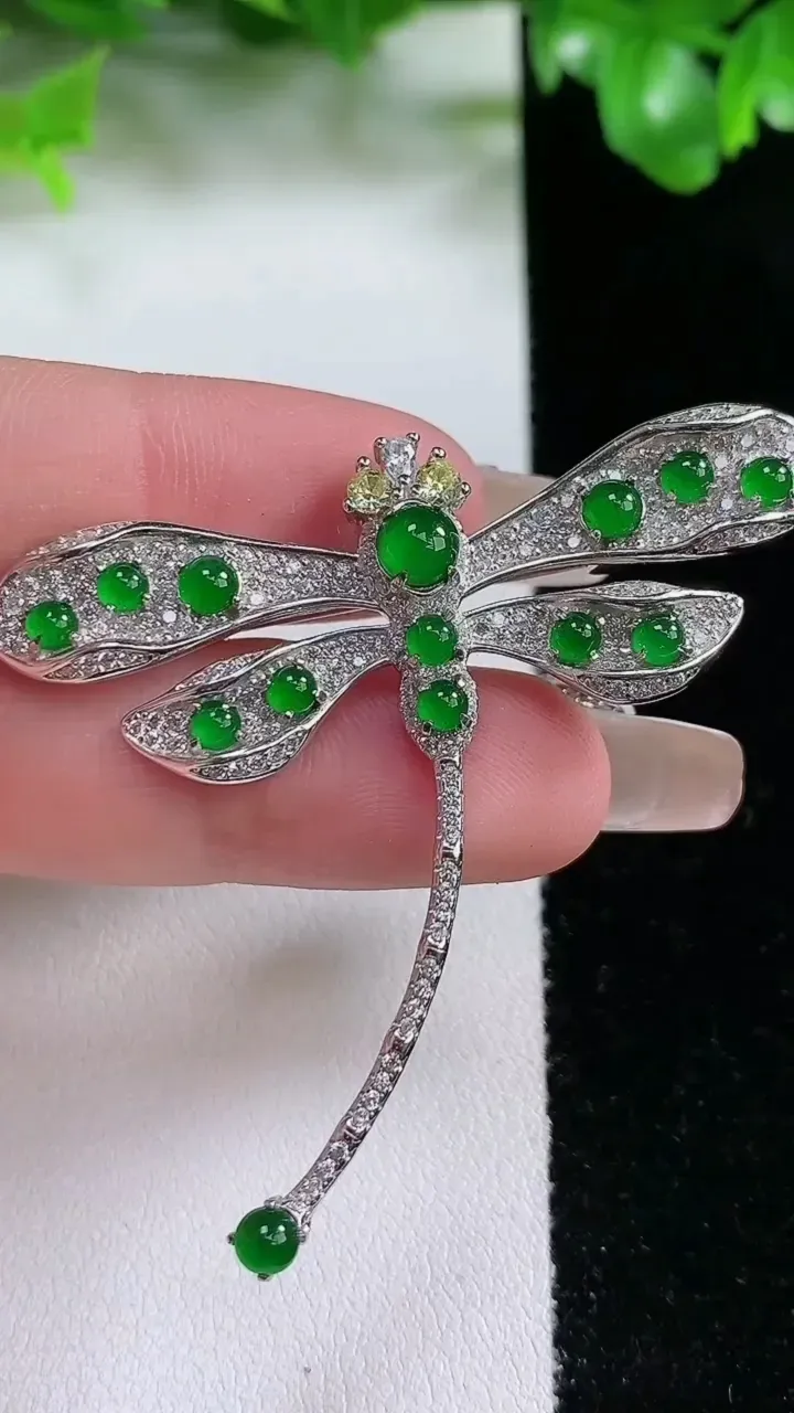 天然A货翡翠蛋面蜻蜓胸针,尺寸5.6,重量:10.94g 1月21日
