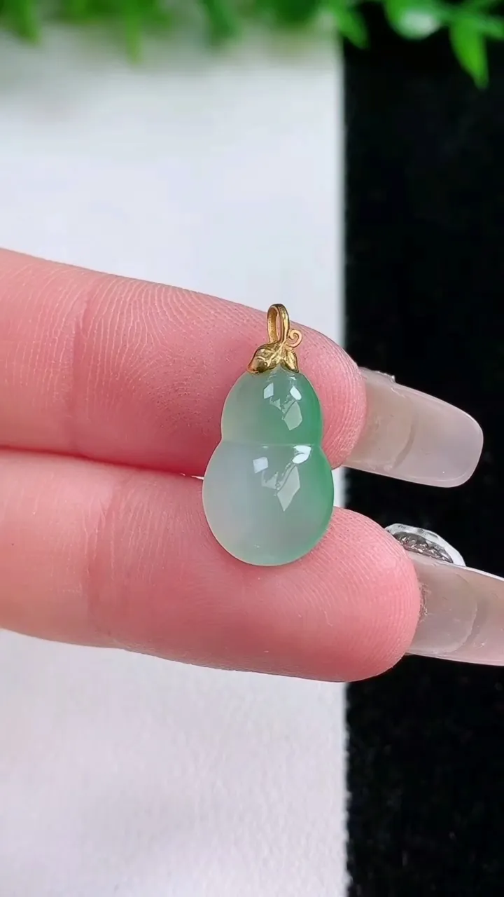 天然A货翡翠葫芦吊坠,尺寸14.8-9.8-4,重量:1.18g 1月24日