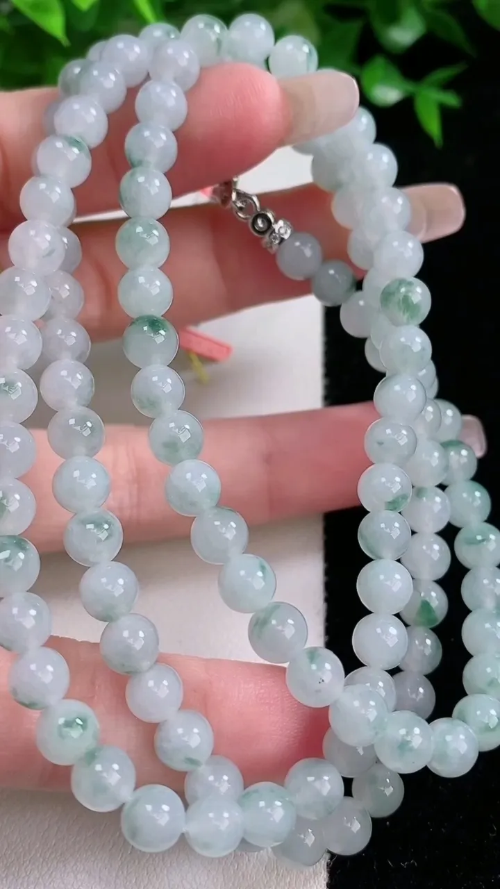 天然A货翡翠飘花圆珠项链,尺寸5.8-108颗,重量:39.14g 1月24日