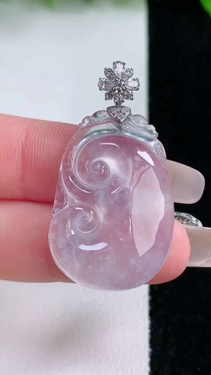 天然A货翡翠种白冰如意吊坠,尺寸27.5-21-4.7,重量:6.04g 1月24日