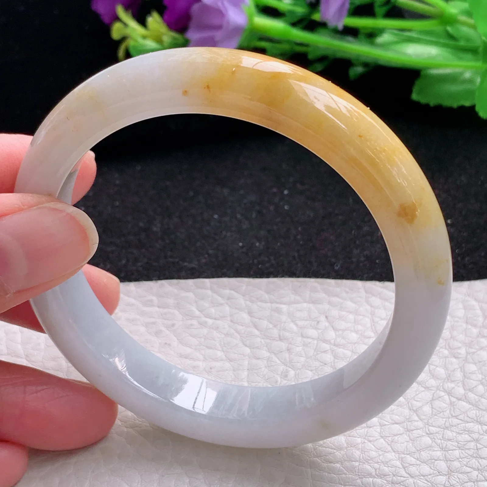 【翡翠名称】冰飘花54.5圈口贵妃翡翠手镯 【翡翠尺寸】54.5*47*11*6.2mm适合52-5