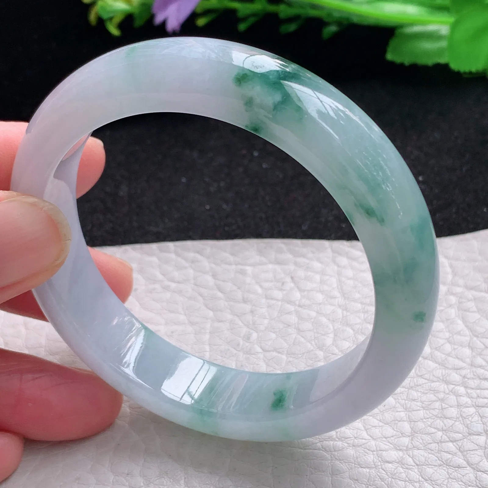 【翡翠名称】冰紫飘绿58.5正圈口翡翠手镯 【翡翠尺寸】58.5*11.6*8.5mm适合57.5-