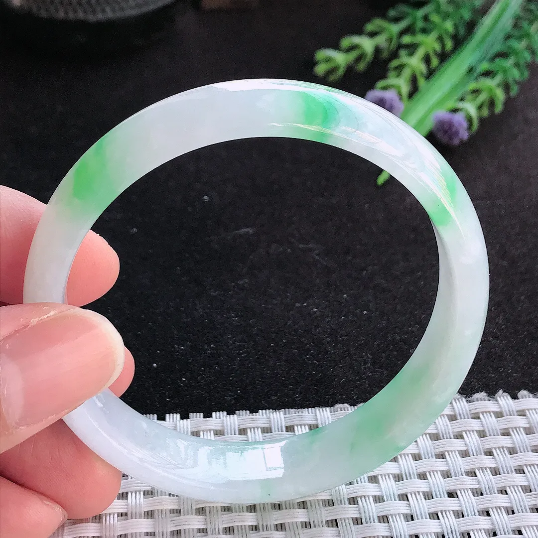 天然A货翡翠60/12.8/7.5老坑冰胶果冻飘花手镯宽边玉手镯