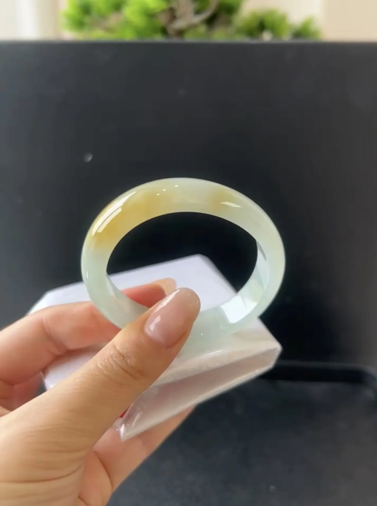 冰黄翡贵妃手镯,完美无纹裂。自然光实拍。53-45-12.6-7.3
