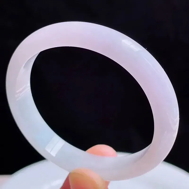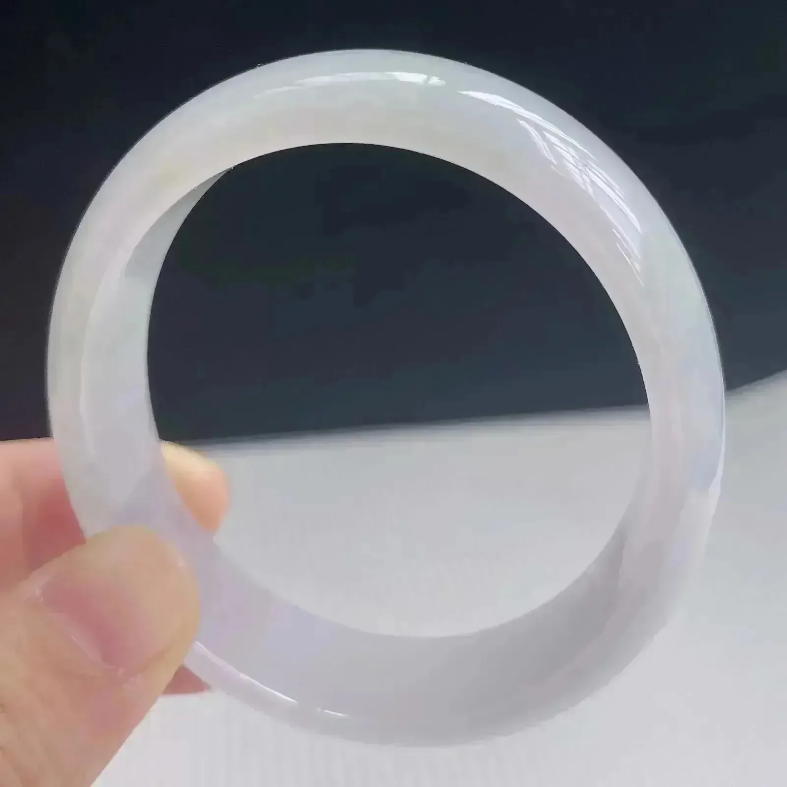 55圈贵妃天然翡翠A货淡紫玉手镯好种水春彩水润手镯36.25g