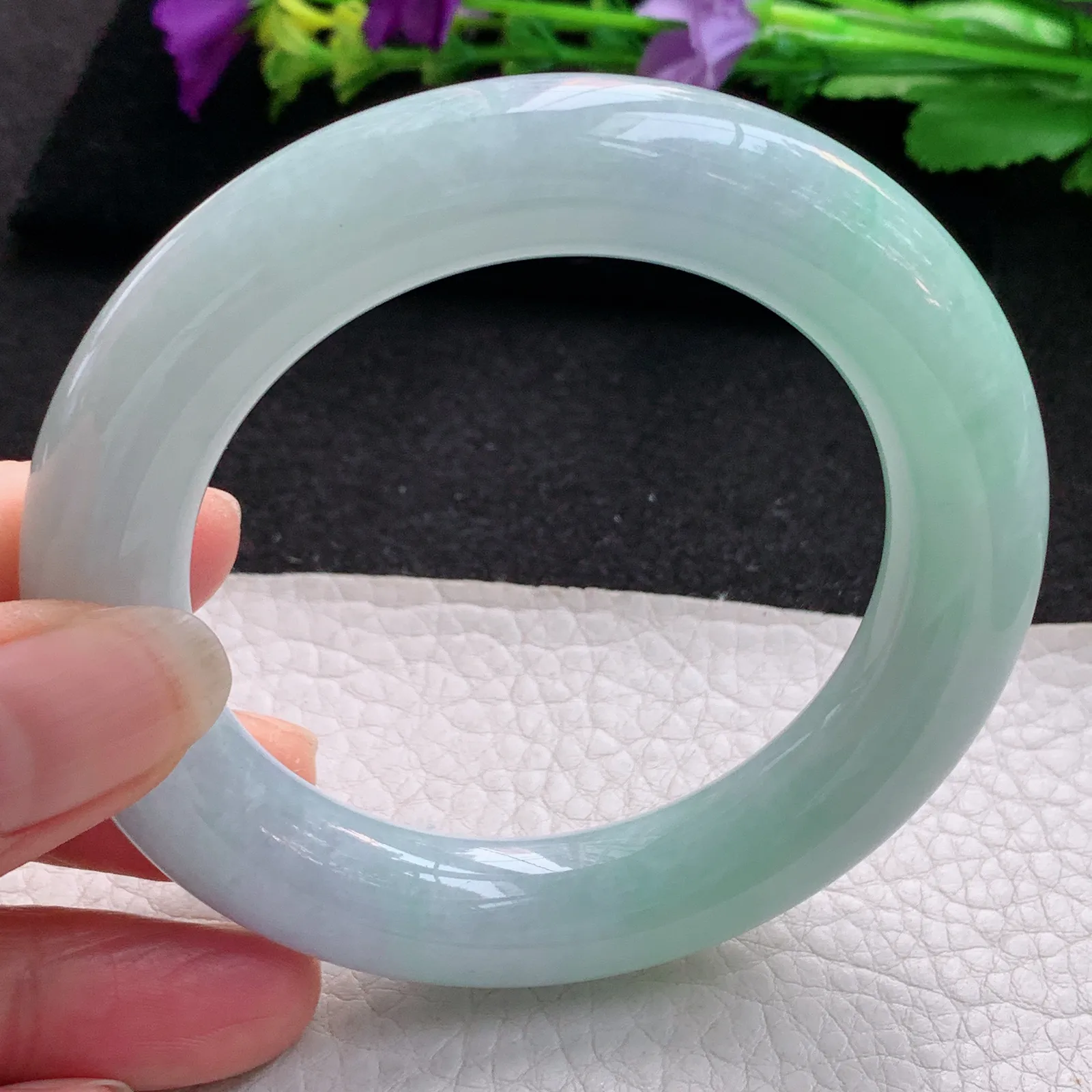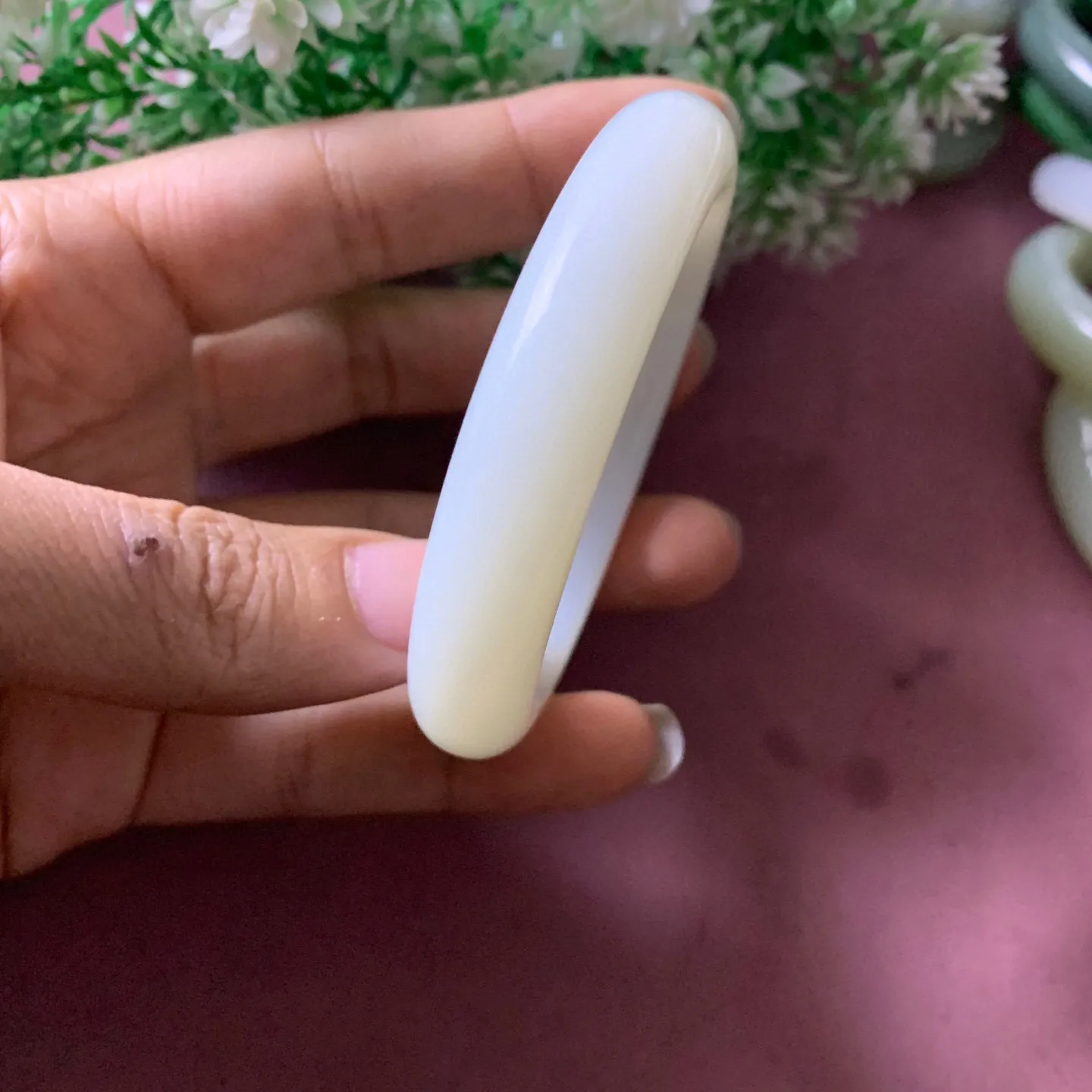 挑选了四只镯子,最后留下的这只最合眼缘和心意,非常感谢直播间三位美女的细心挑选,十分满意这只宝贝,是我心目中想要的飘花