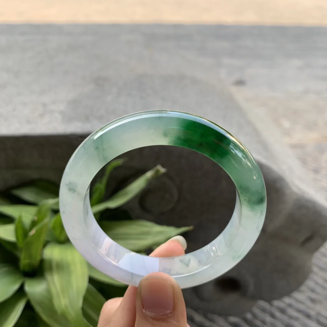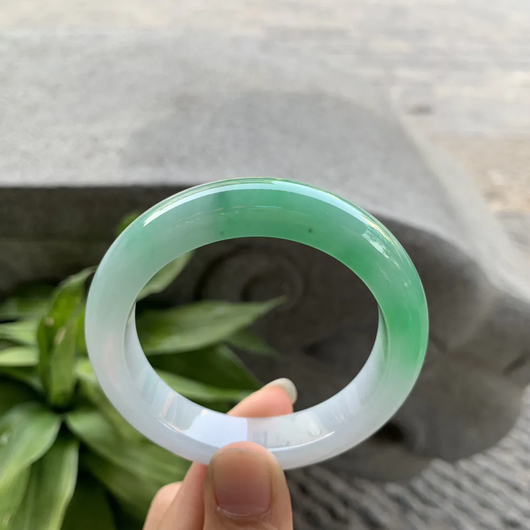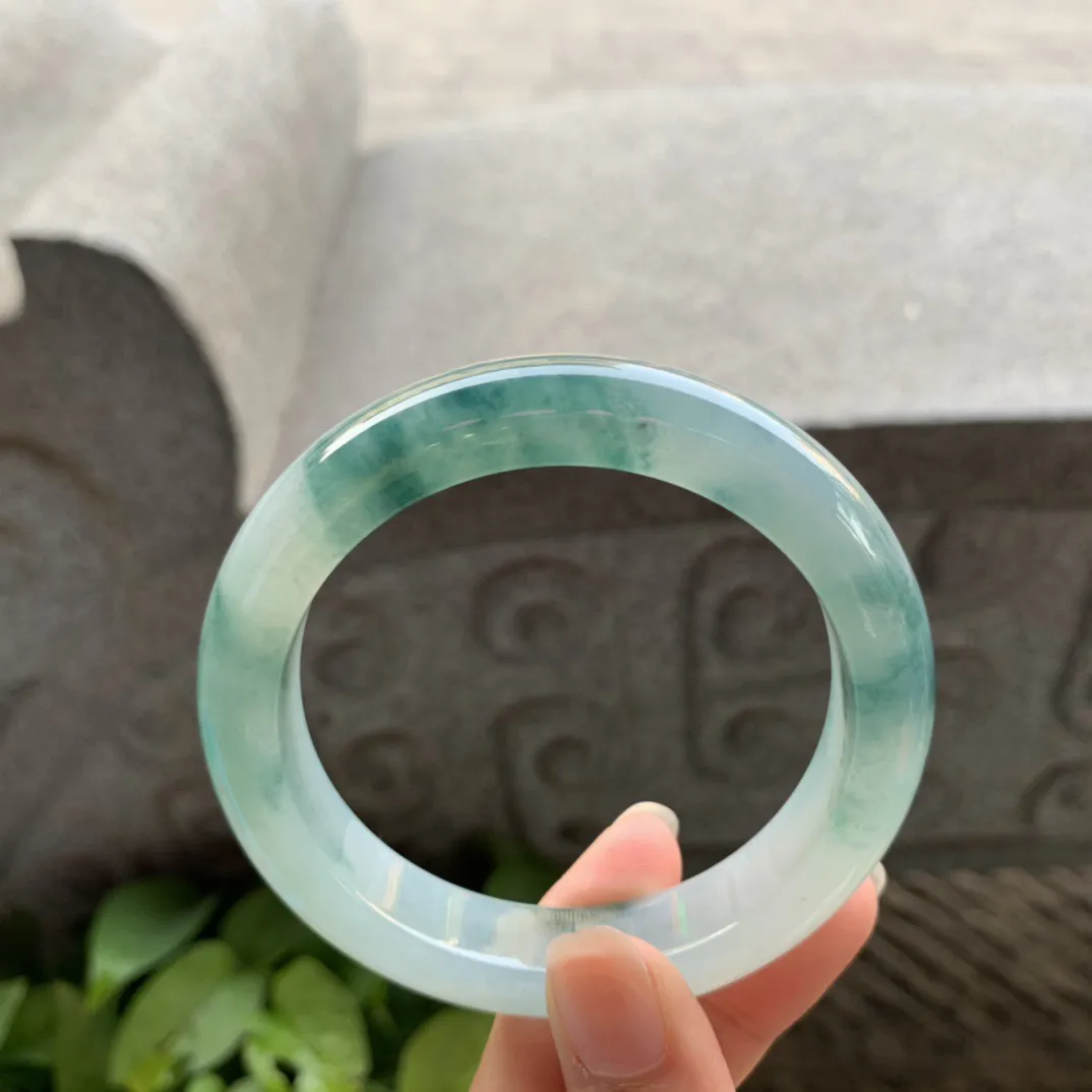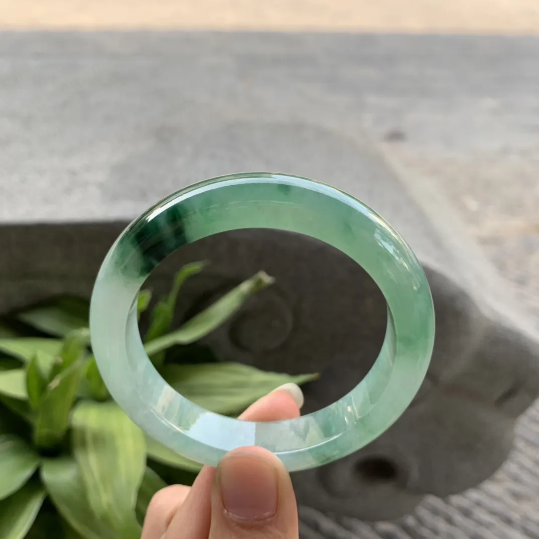 圈口 54.5-12.5-8.6【冰绿飘花正圈手镯】正圈54 55可戴