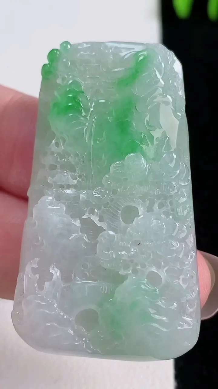 天然A货翡翠山水牌吊坠,尺寸46.8-27.5-7.6,重量:21.88g 11月14日