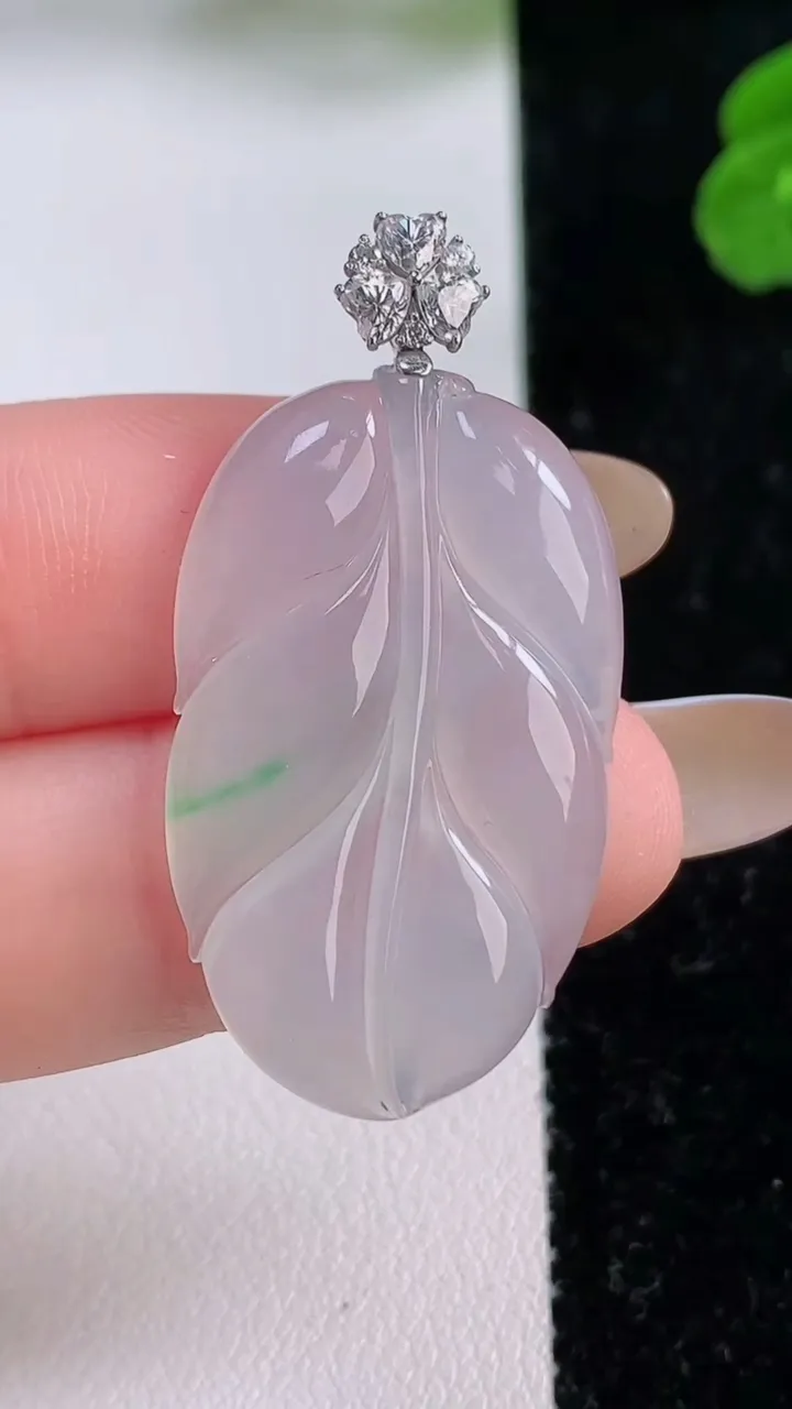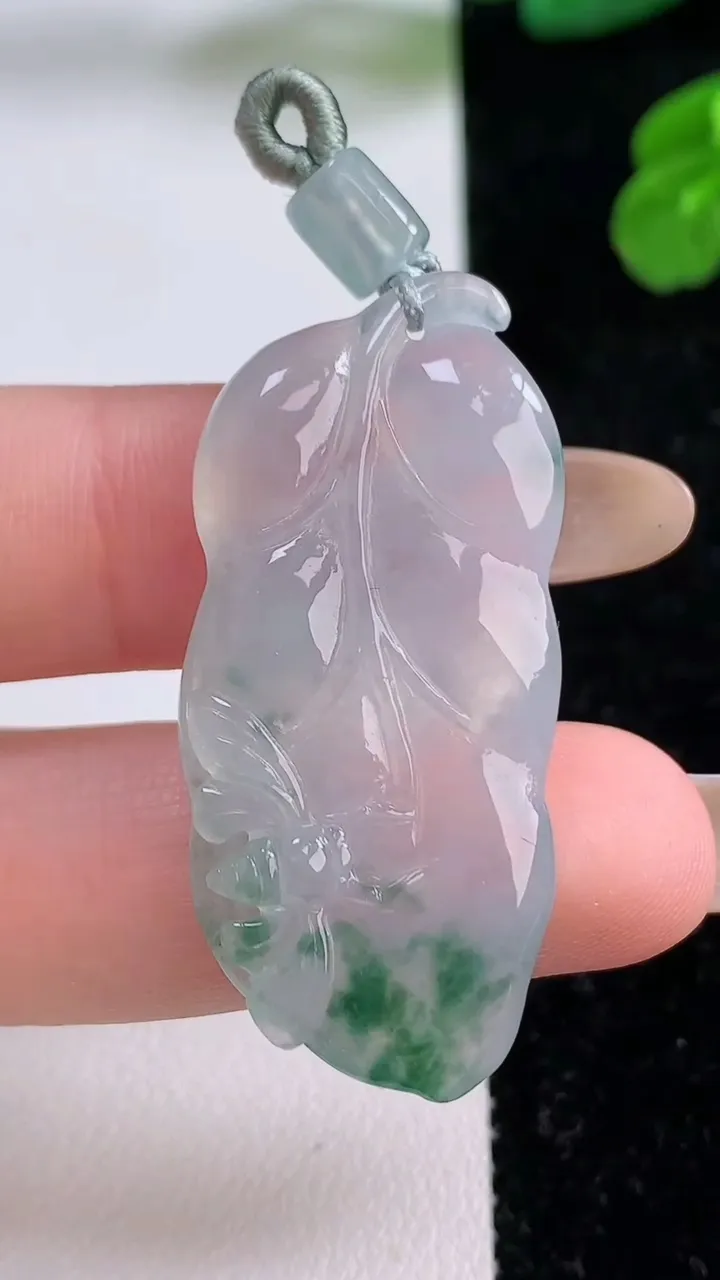 天然A货翡翠冰种飘花金枝玉叶 叶子吊坠,尺寸41-18.2-4.7,重量:8.33g 11月17日