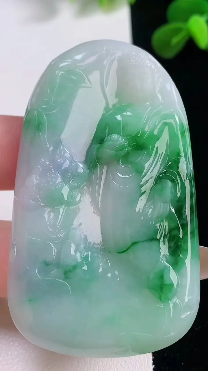 天然A货翡翠佛公吊坠,尺寸34.5-37-5.7,重量:12.36g 11月19日