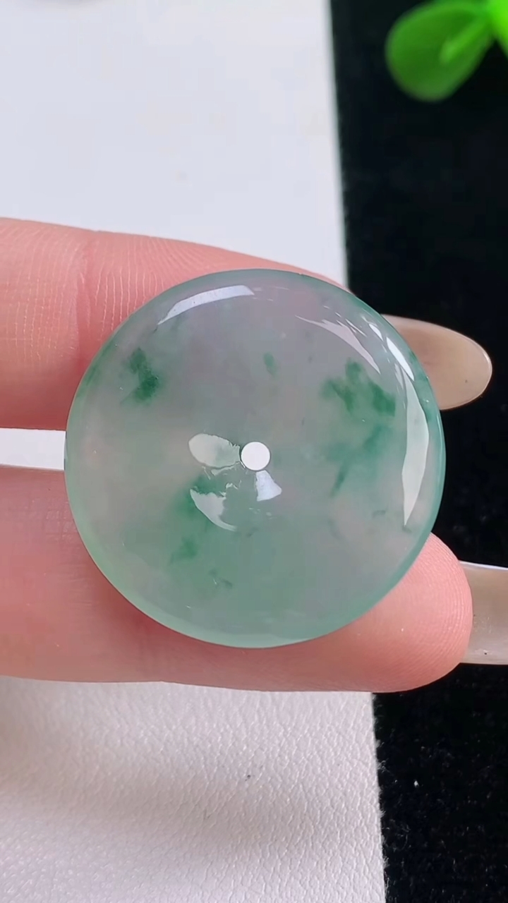 天然A货翡翠冰种飘花平安扣吊坠,尺寸27.2-4.6,重量:7.41g 11月19日