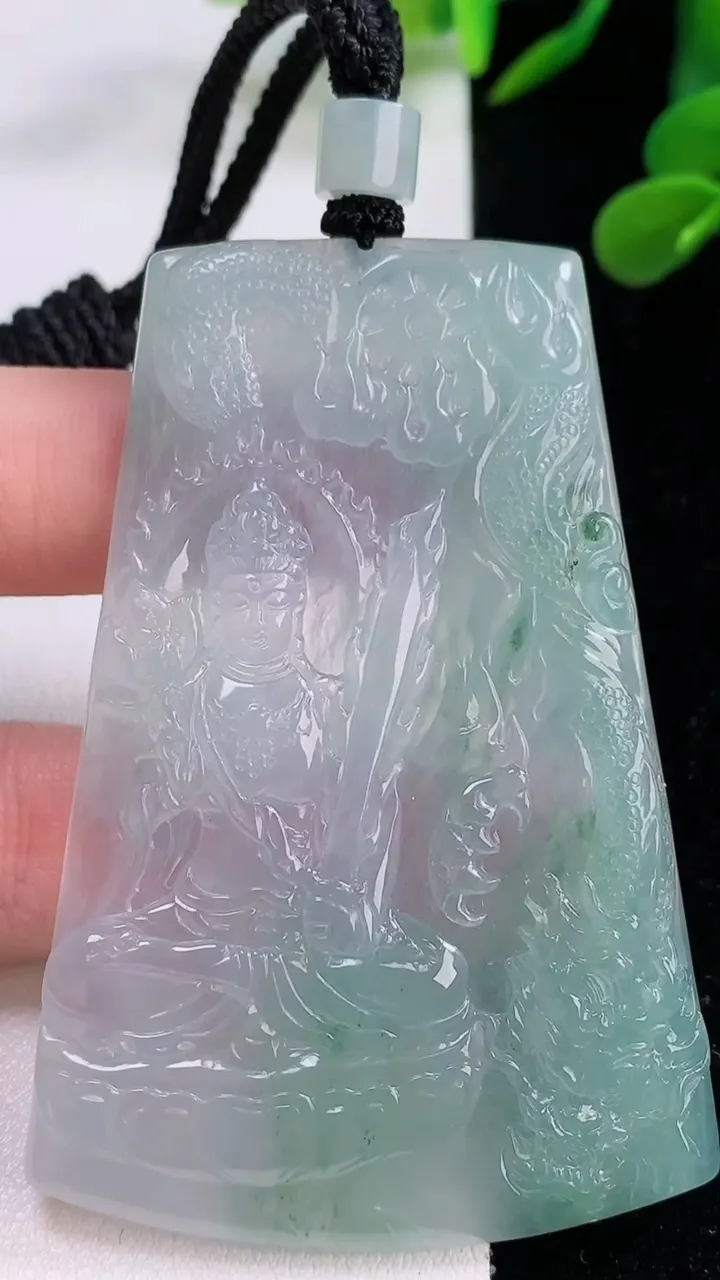 天然A货翡翠种飘花祥龙虚空藏菩萨吊坠,尺寸68-46-5.5,重量:41.96g 11月25日