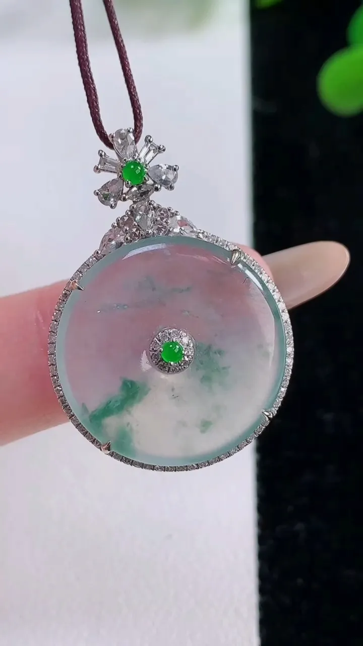天然A货翡翠种飘花平安扣吊坠,尺寸31.3-22.3-7.2,裸石20重量:4.78g 11月25日