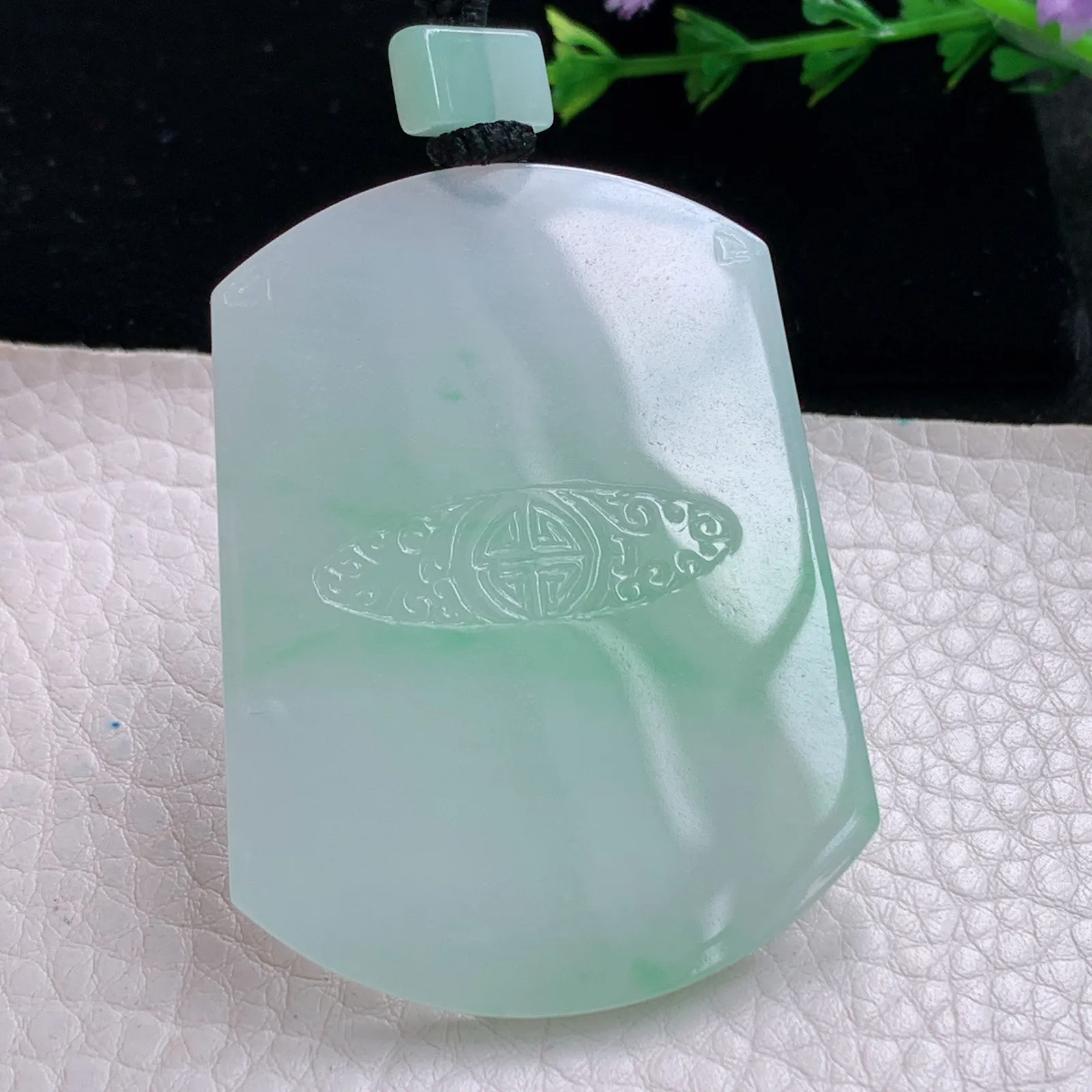冰种飘花圆牌吊坠 尺…