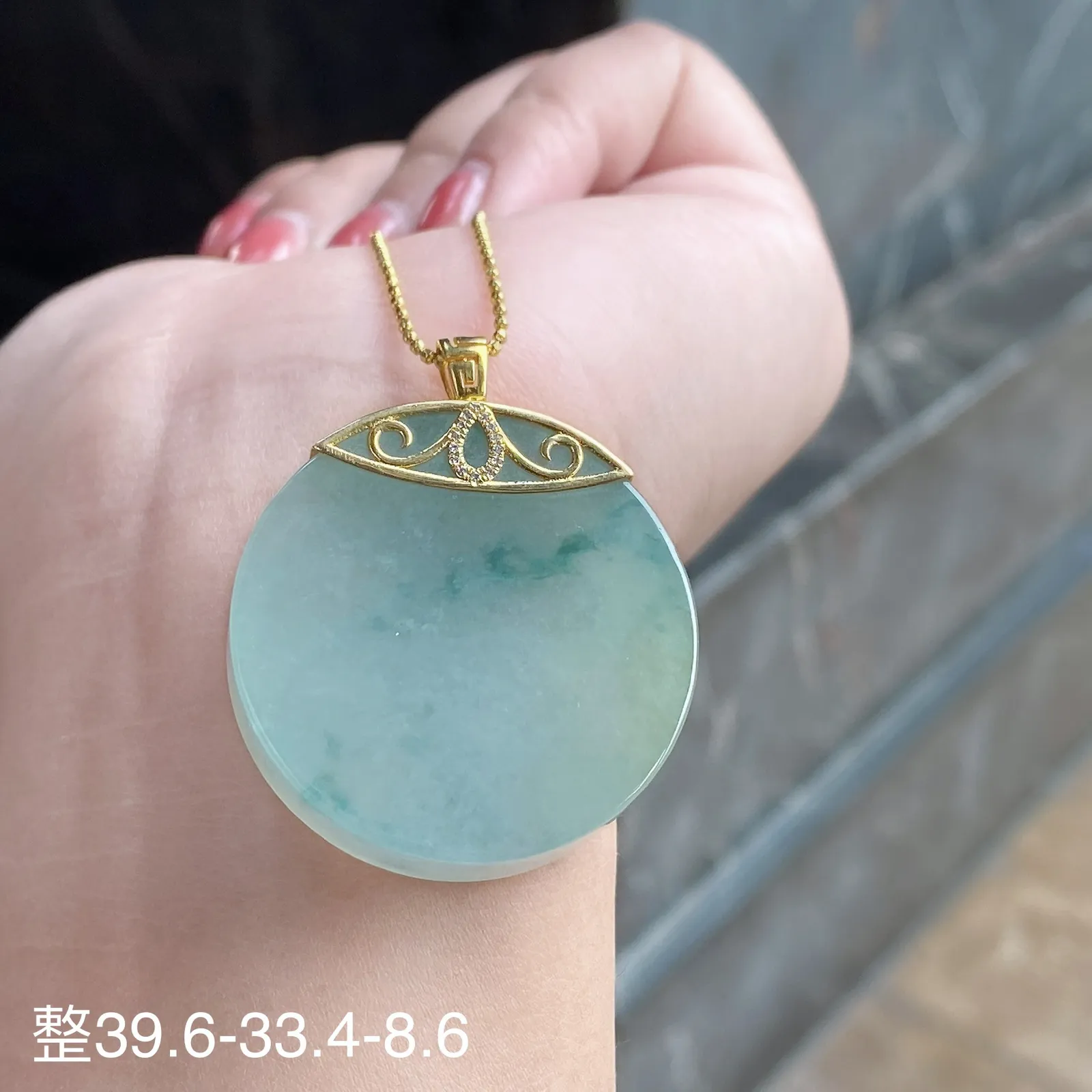 冰种飘花圆牌吊坠 尺寸39.6-33.4-8.6毫米