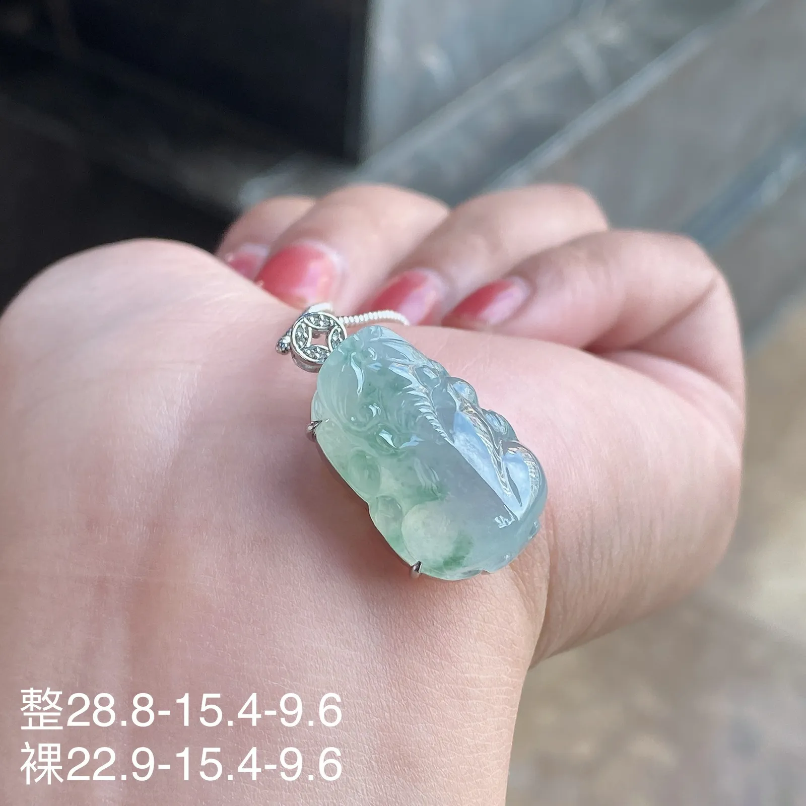 冰种飘花貔貅吊坠 尺寸28.8-15.4-9.6毫米