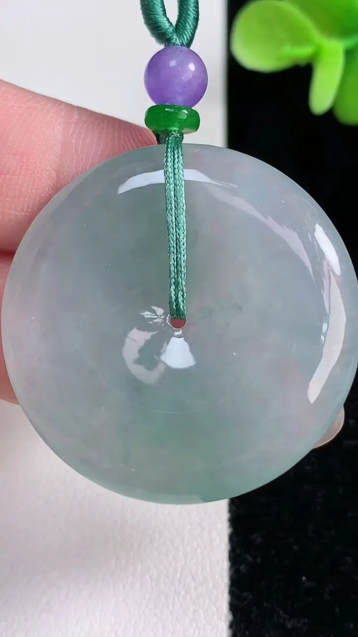 天然A货翡翠冰种飘花平安扣吊坠,尺寸35.8-5.7,重量:16.42g 12月14日