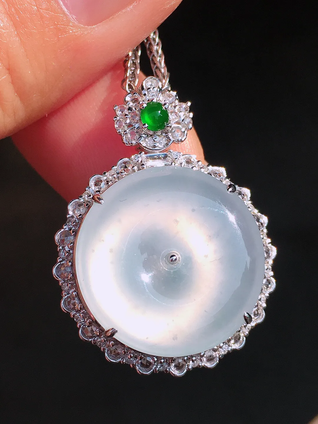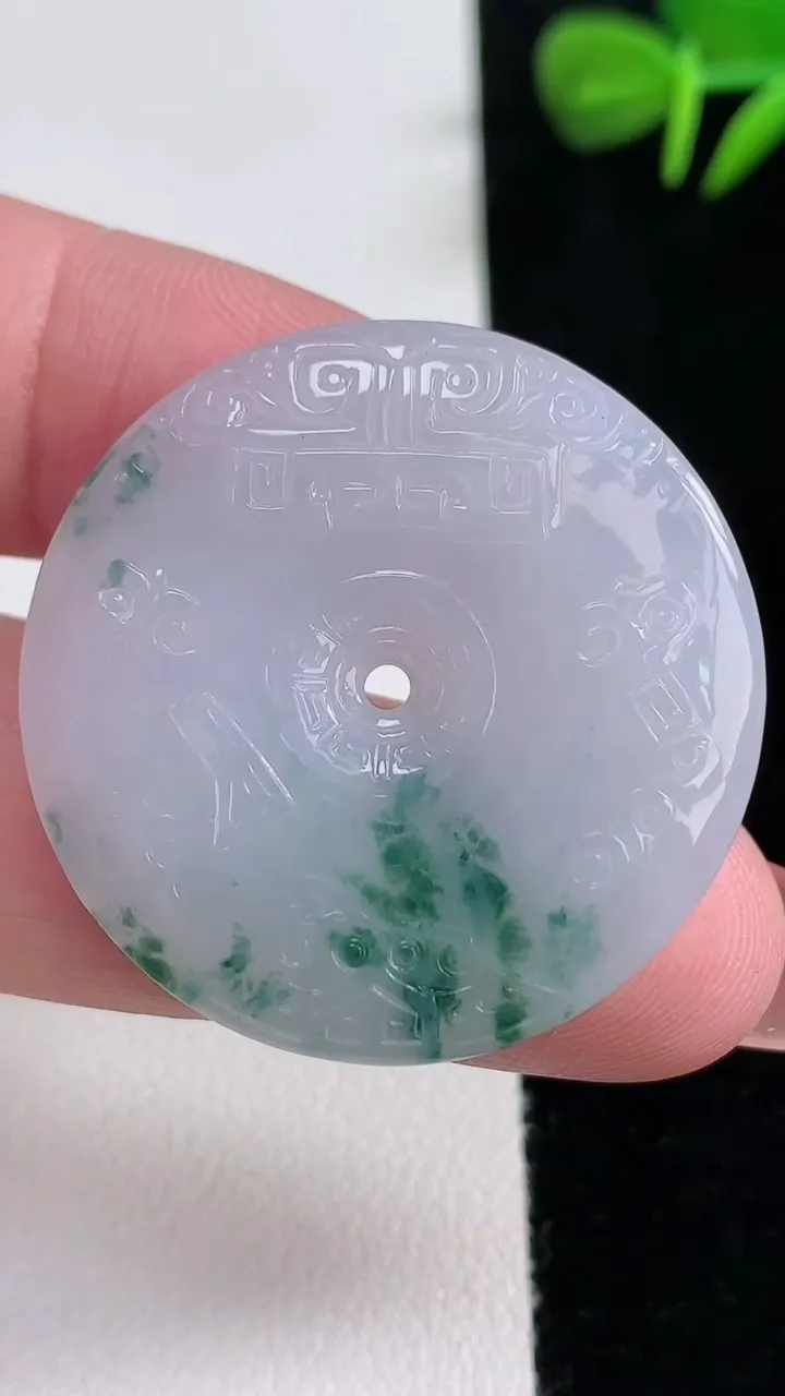 天然A货翡翠冰种飘花复古平安扣吊坠,尺寸33.8-4.4,重量:10.72g 12月15日