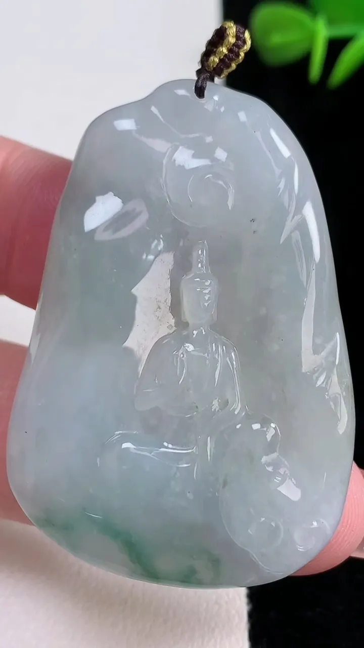 天然A货翡翠飘花观音菩萨吊坠,尺寸49.3-34-5,重量:20.91g 12月15日
