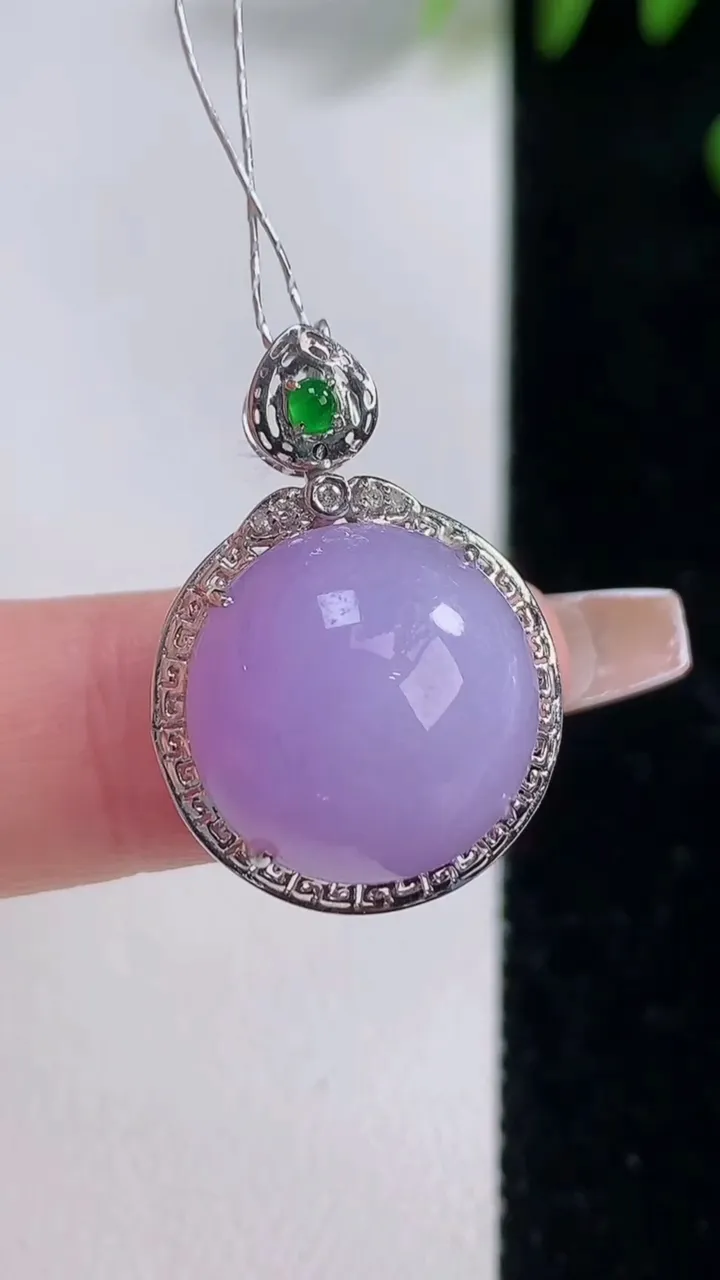 天然A货翡翠18K金紫罗兰蛋面吊坠,尺寸25.6-17.8-10.4,裸石15重量:4.36g 12