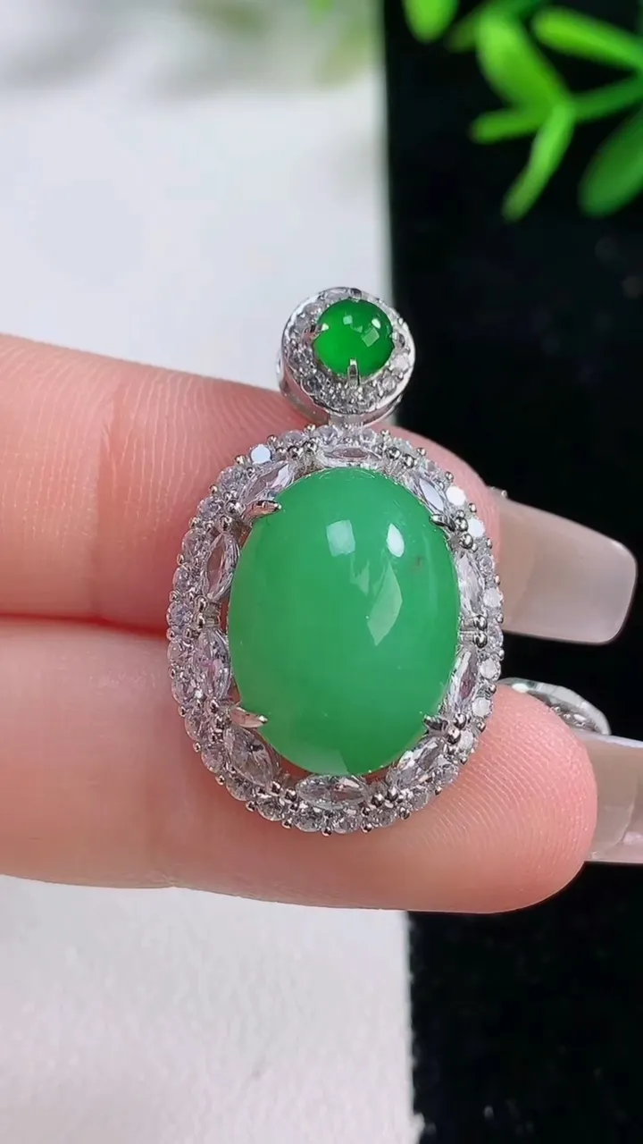 天然A货翡翠蛋面吊坠,尺寸30-18-9.1,裸石16-11.7重量:4.98g 12月27日