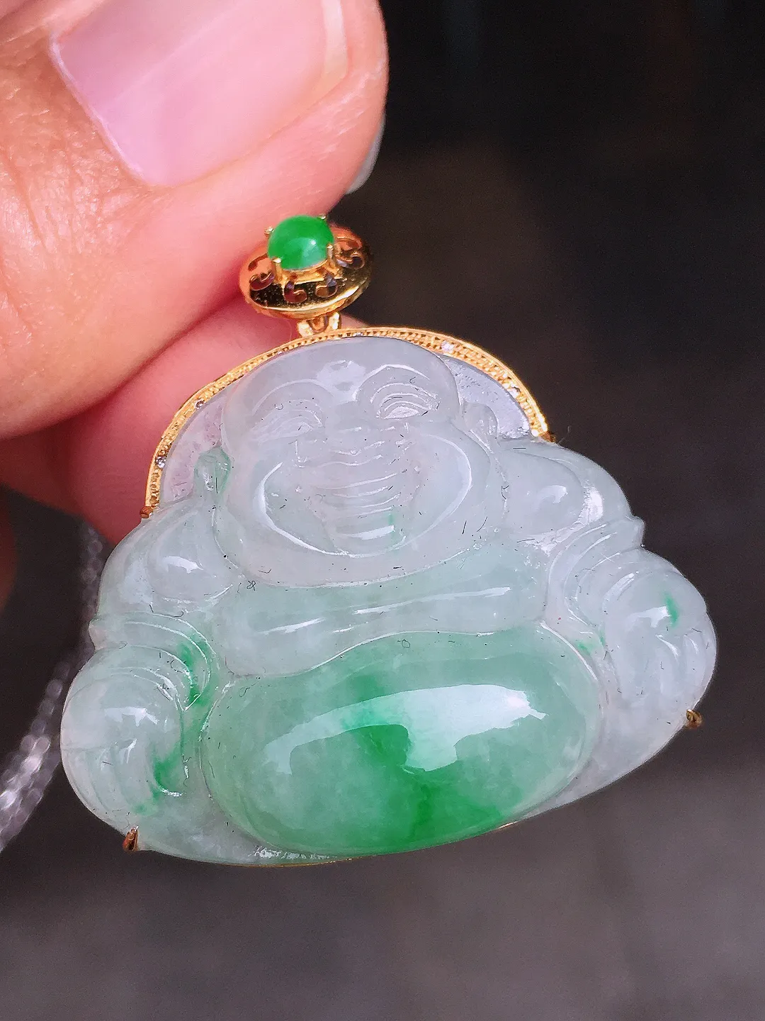 天然A货翡翠18K金紫罗兰飘花如意吊坠,尺寸40.4-25.2-5.7,重量:10.97g 12月1