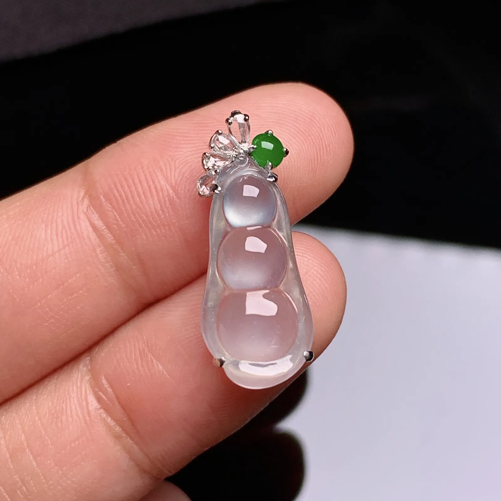 冰种福豆吊坠,18k金镶嵌,冰冰润润,玉质细腻,种水足 尺寸22.9*9*5.5