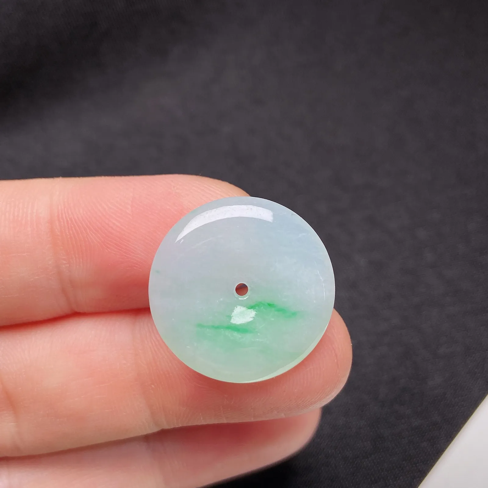 冰种飘绿平安扣,冰润光泽,玉质细腻,种水足 001 尺寸19.9*3.4