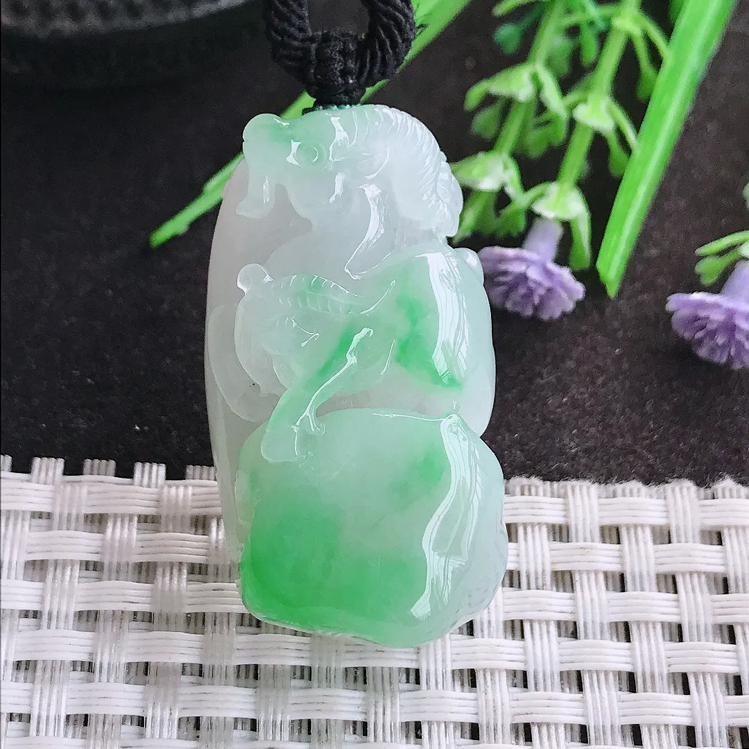 天然A货翡翠40/20/13.5老坑精美冰润飘阳绿生肖羊吊坠翡翠挂件