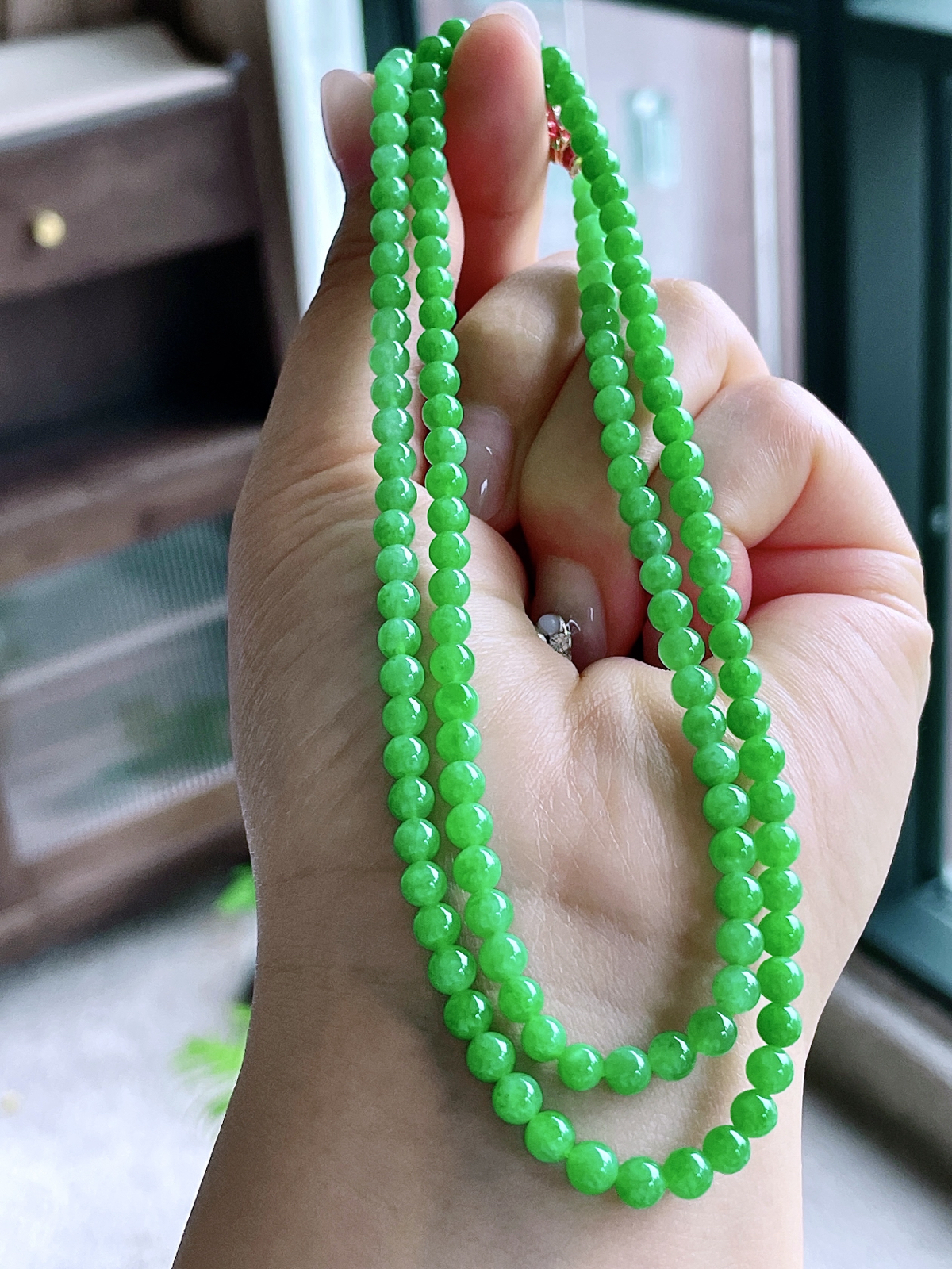 越看越喜欢的一串项链,阳绿的颜色也比较抬气色显年轻。小雅服务很好,宝主也很大气!满意😀