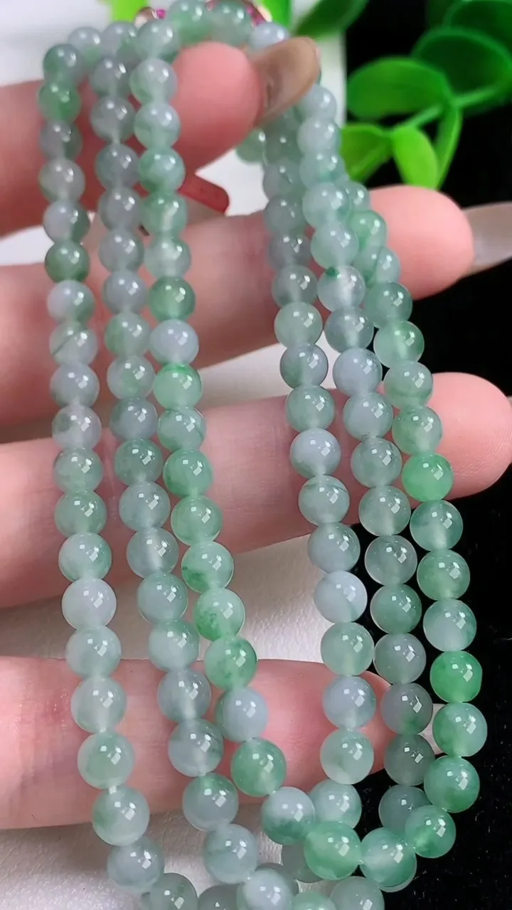 天然A货翡翠圆珠项链,尺寸4.8-128颗,重量:28.50g 11月21日
