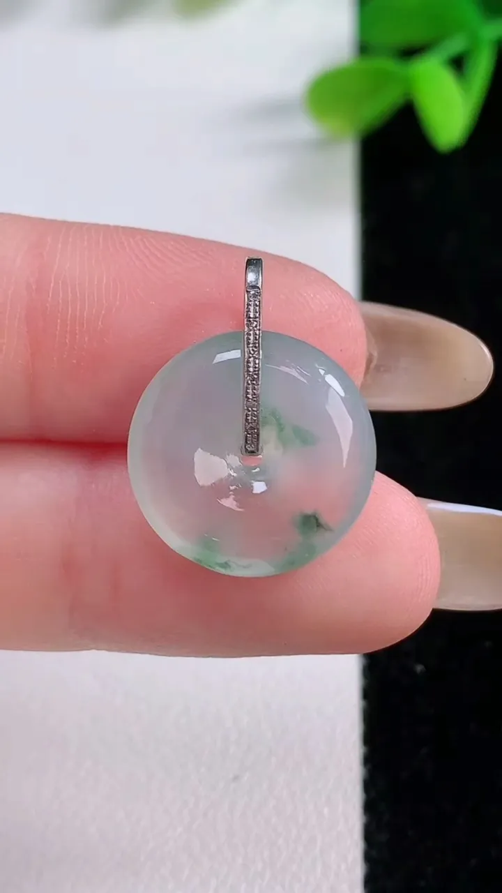 天然A货翡翠种飘花平安扣吊坠,尺寸16-4.6,重量:2.45g 11月21日