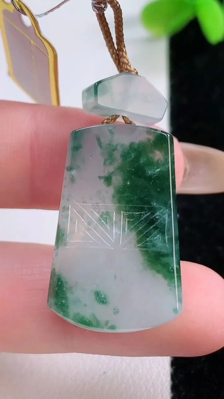 天然A货翡翠冰种飘花仿古无事牌吊坠,尺寸28.2-17.6-5.7,重量:9.35g 11月21日