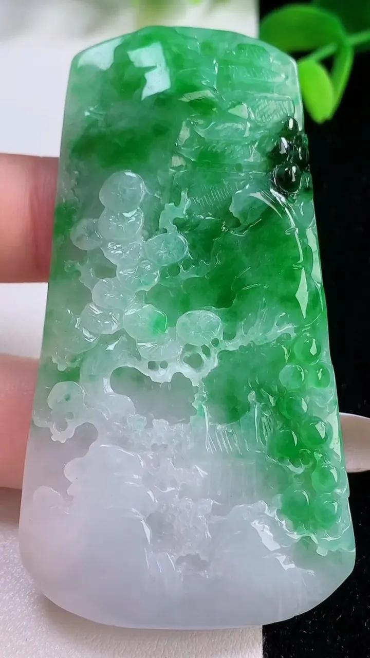 天然A货翡翠山水牌吊坠,尺寸69.5-37-5.7,重量:33.57g 11月21日