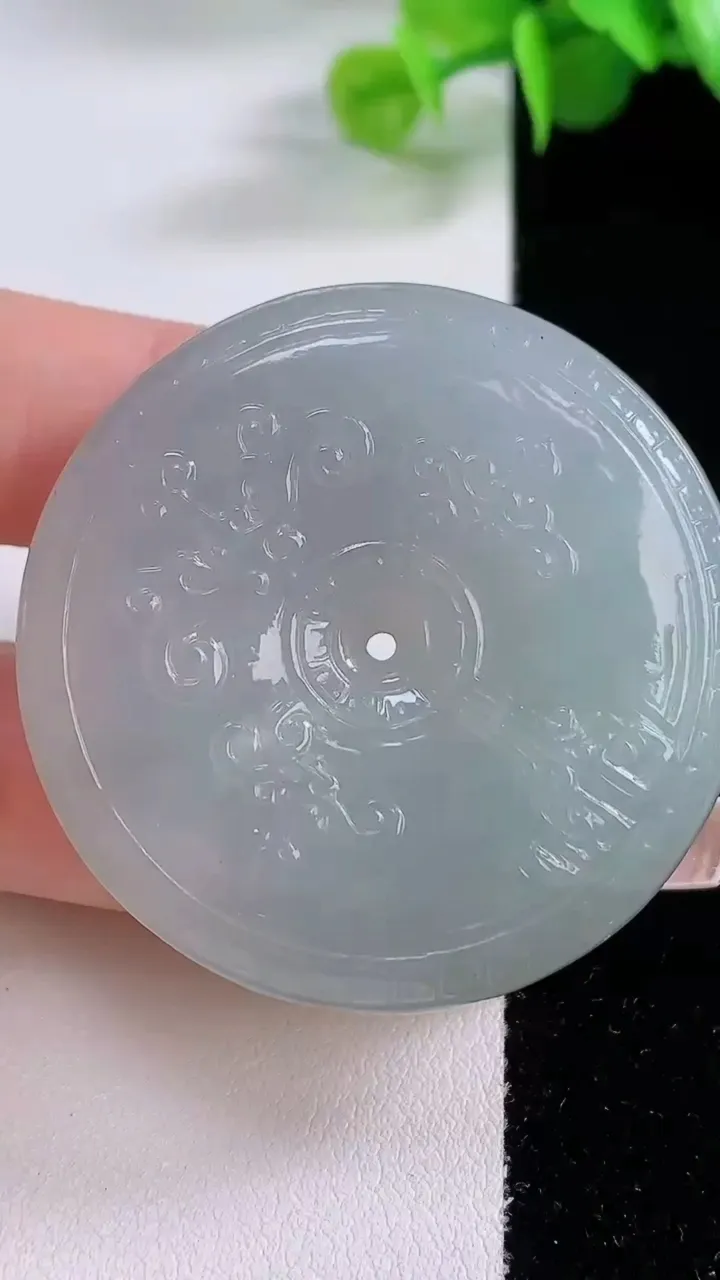 天然A货翡翠雕花平安扣吊坠,尺寸44-9.7,重量:41.88g 12月4日