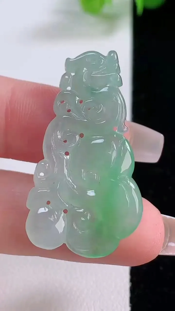 天然A货翡翠如意吊坠…