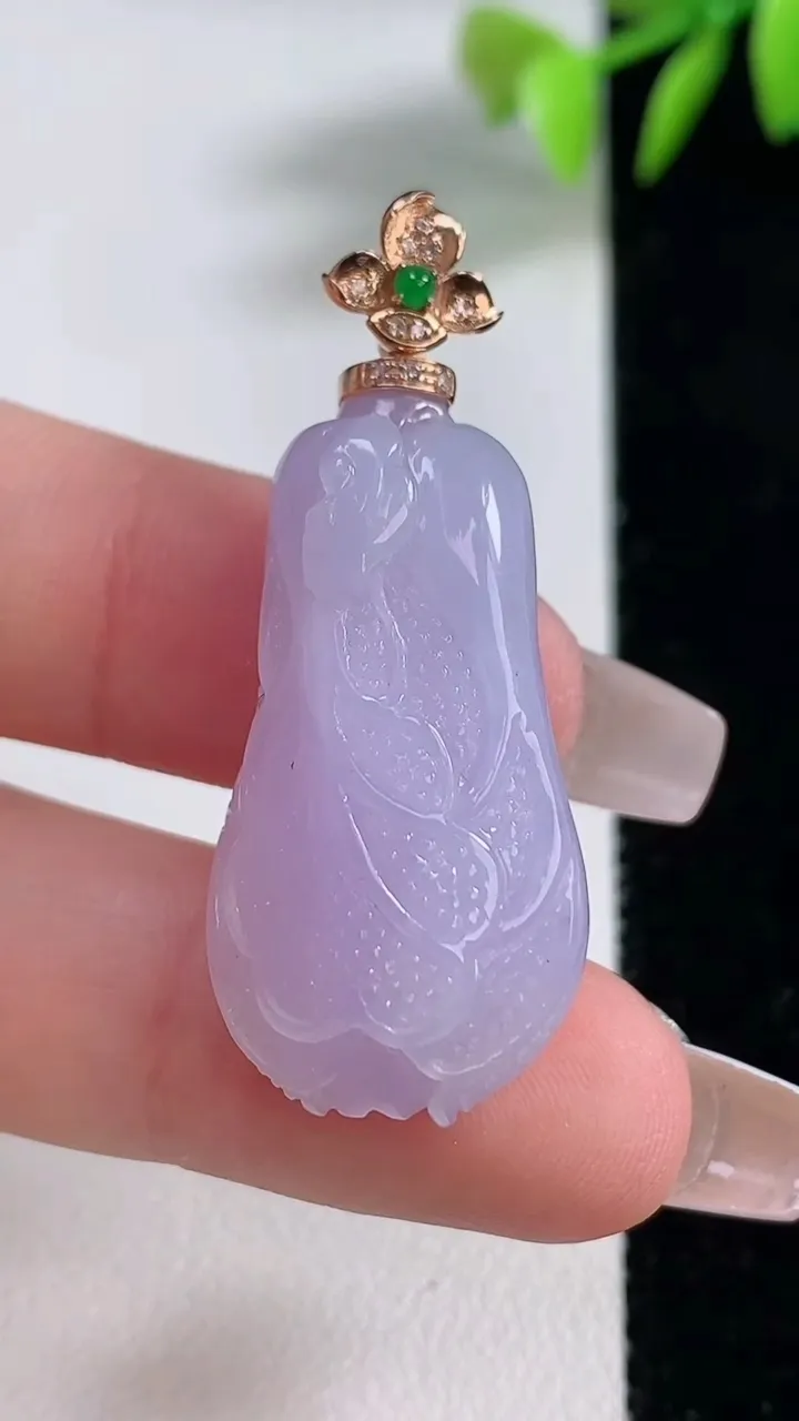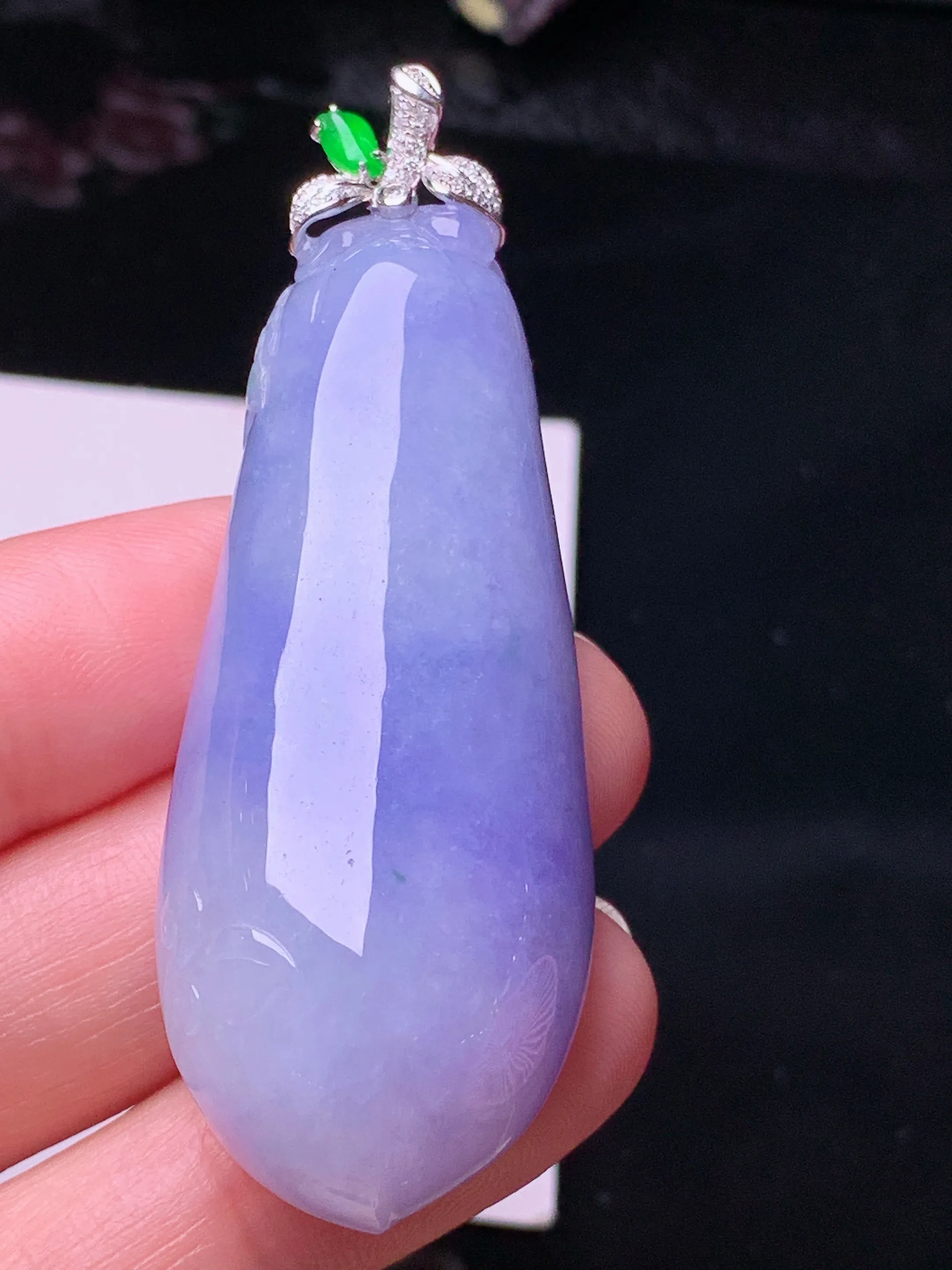 18k金钻镶嵌紫罗兰福瓜吊坠 玉质细腻 水润亮眼 色泽艳丽 整体尺寸60*21.6*12.8