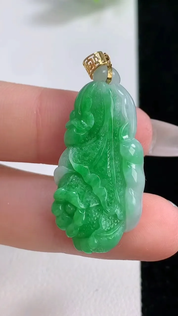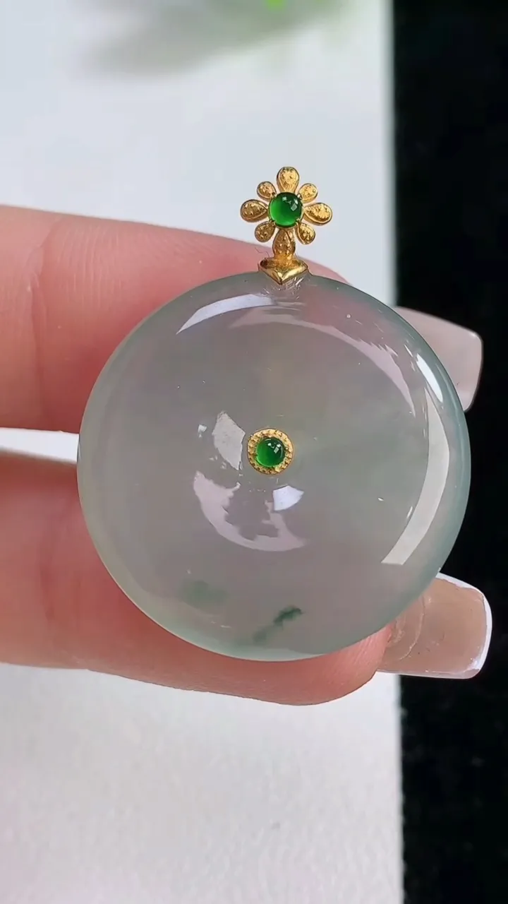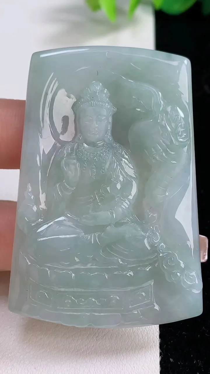 18K金镶嵌冰种翡翠观音菩萨吊坠,冰透赐福翡翠观音,观音面相端庄,品相佳,佩戴气质!#1.9