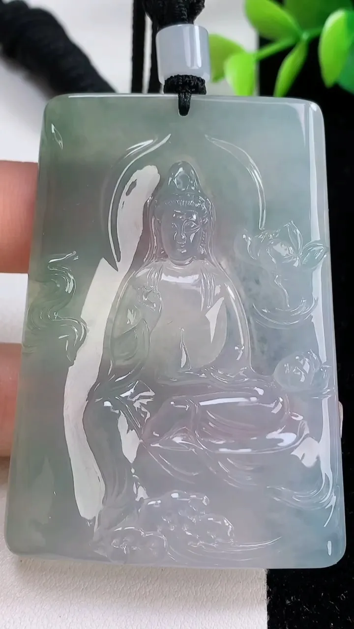 天然A货翡翠观音菩萨吊坠,尺寸63-44.2-5.3,重量:42.84g 12月10日