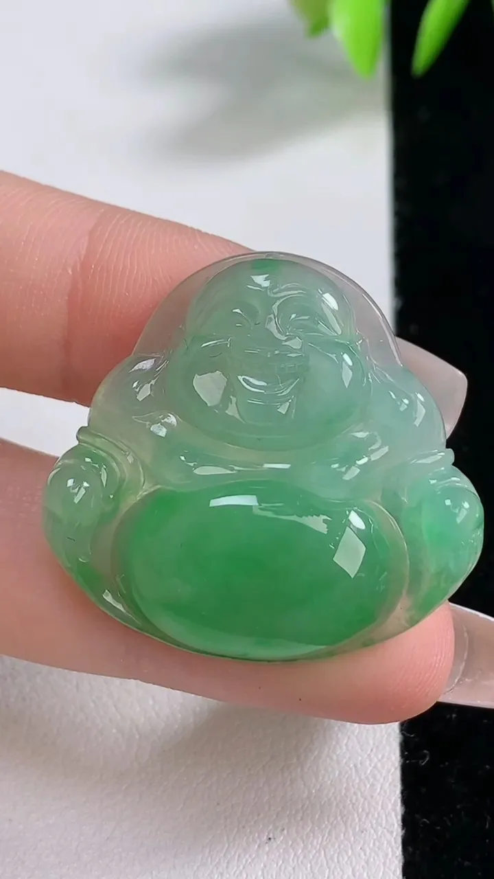 天然A货翡翠佛公吊坠,尺寸29.2-32-5.5,重量:8.15g 12月10日