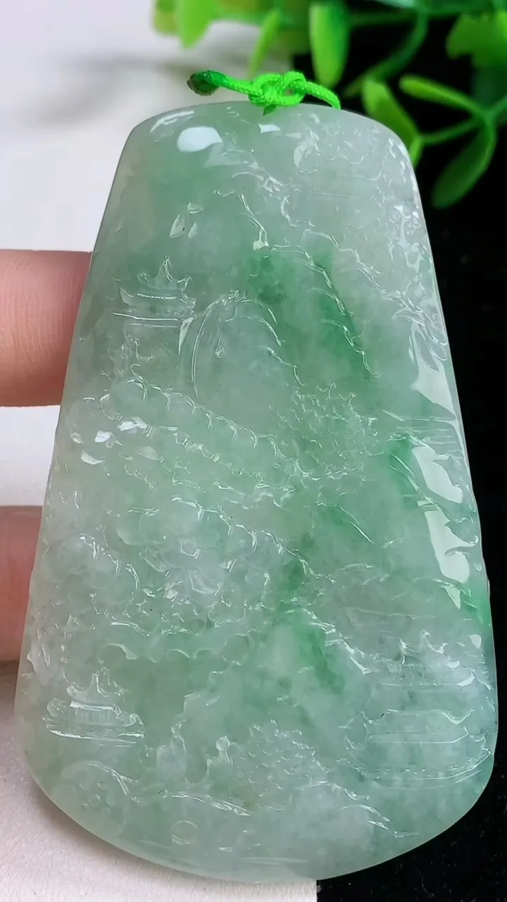天然A货翡翠山水牌吊坠,尺寸76.5-46.8-5.2,重量:43.87g 12月27日