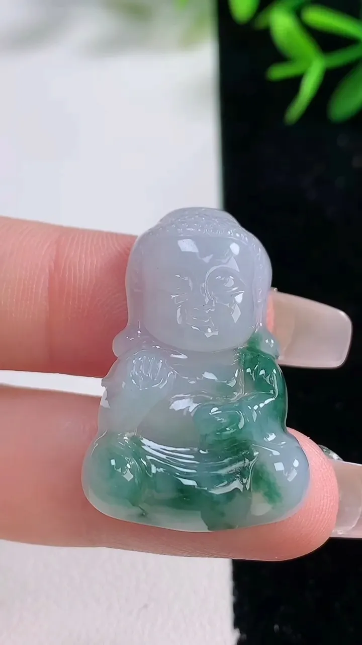 天然A货翡翠种白冰佛公吊坠,尺寸23.7-26.8-5.8,重量:5.25g 12月27日