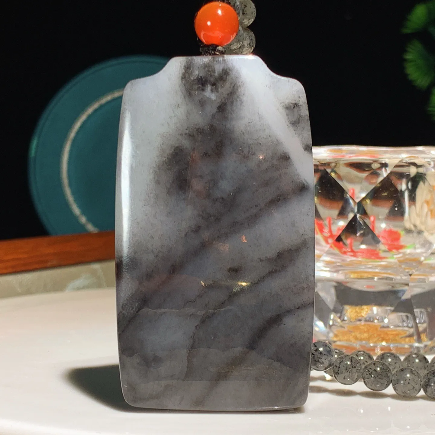 新疆和田玉籽料青花平安无事牌挂件。青花意境山水平安无事牌挂件。尺寸66/37/12重110克。玉质细