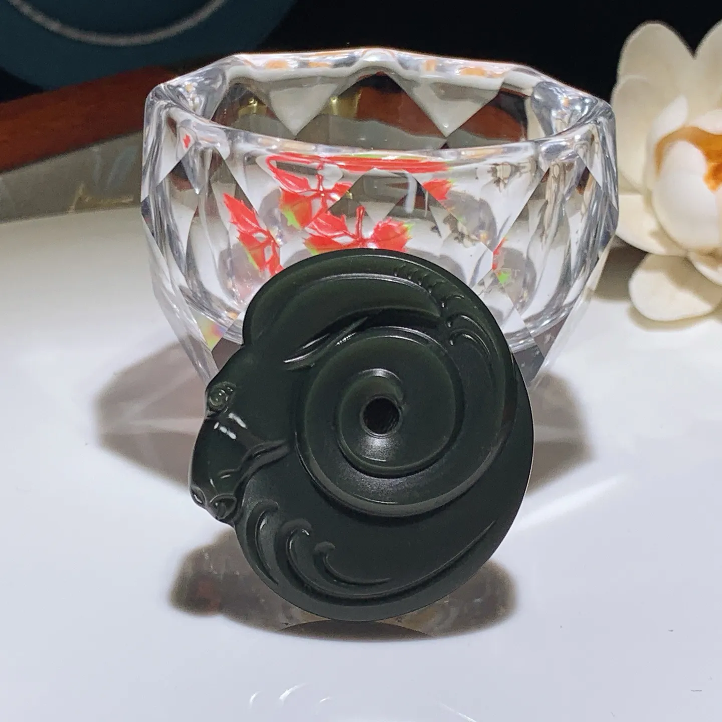 新疆和田玉塔青马到成功挂件。尺寸42/38/13重35.6克。玉质细腻油润。手推出油。佩戴高端典雅。
