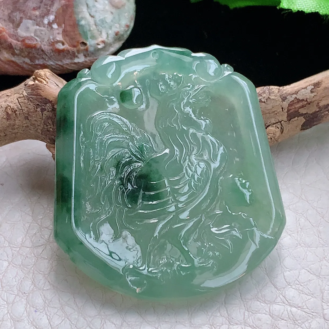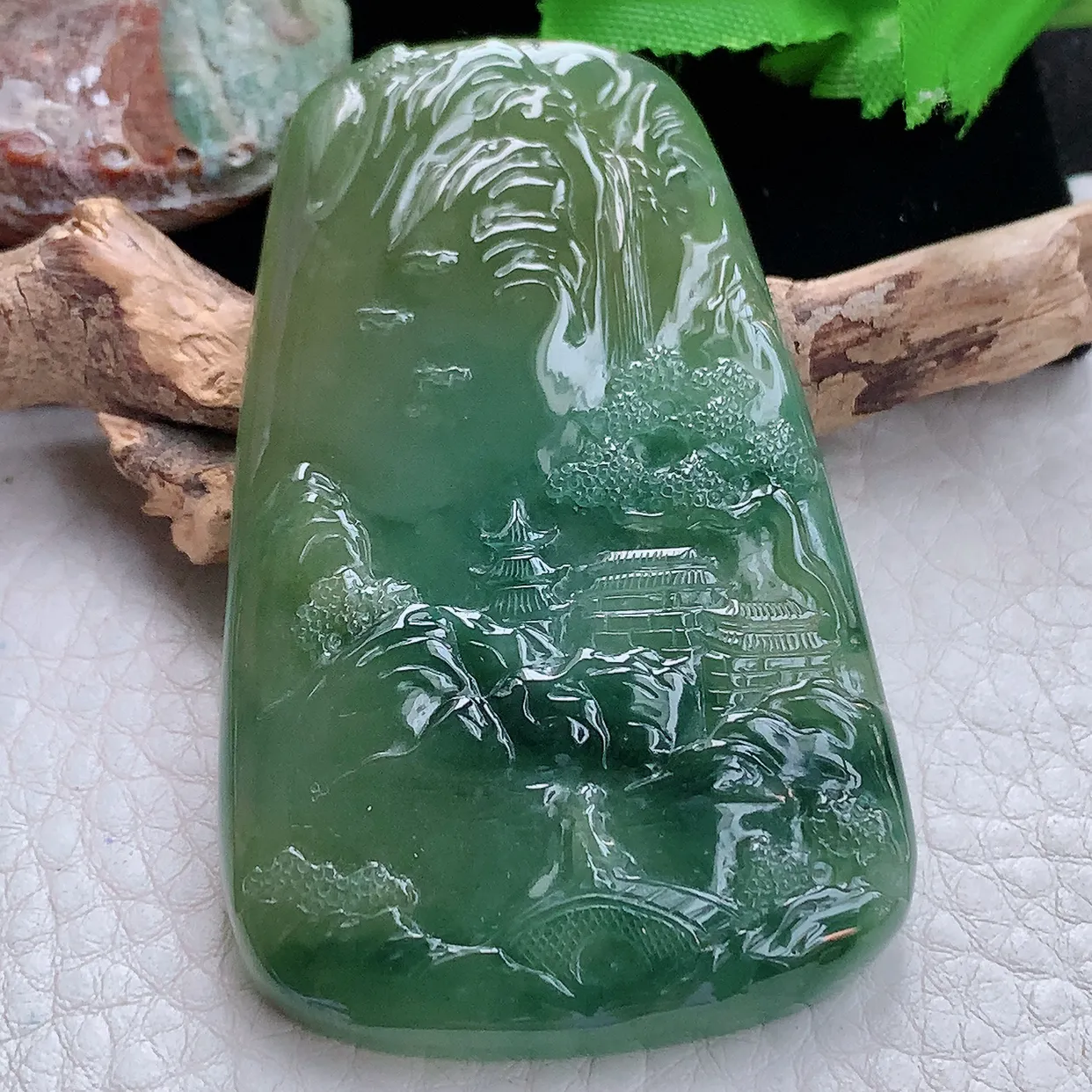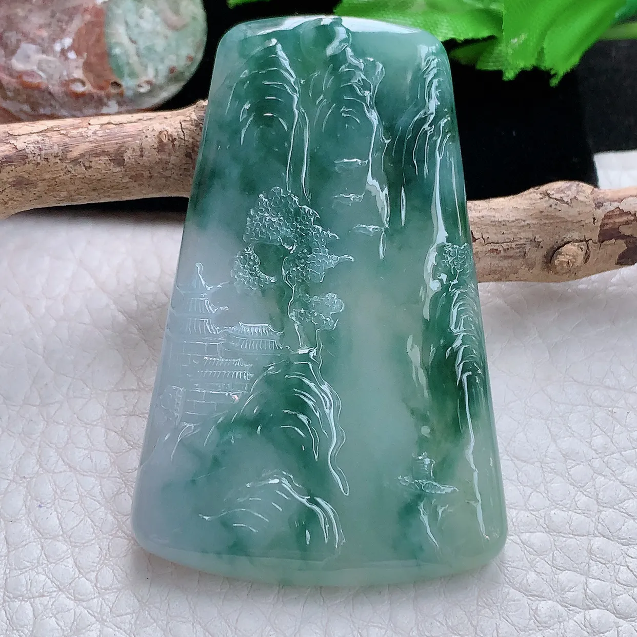 天然A货翡翠飘花无事牌吊坠,尺寸53.4-40.2-5.8,重量:40.09g 12月13日