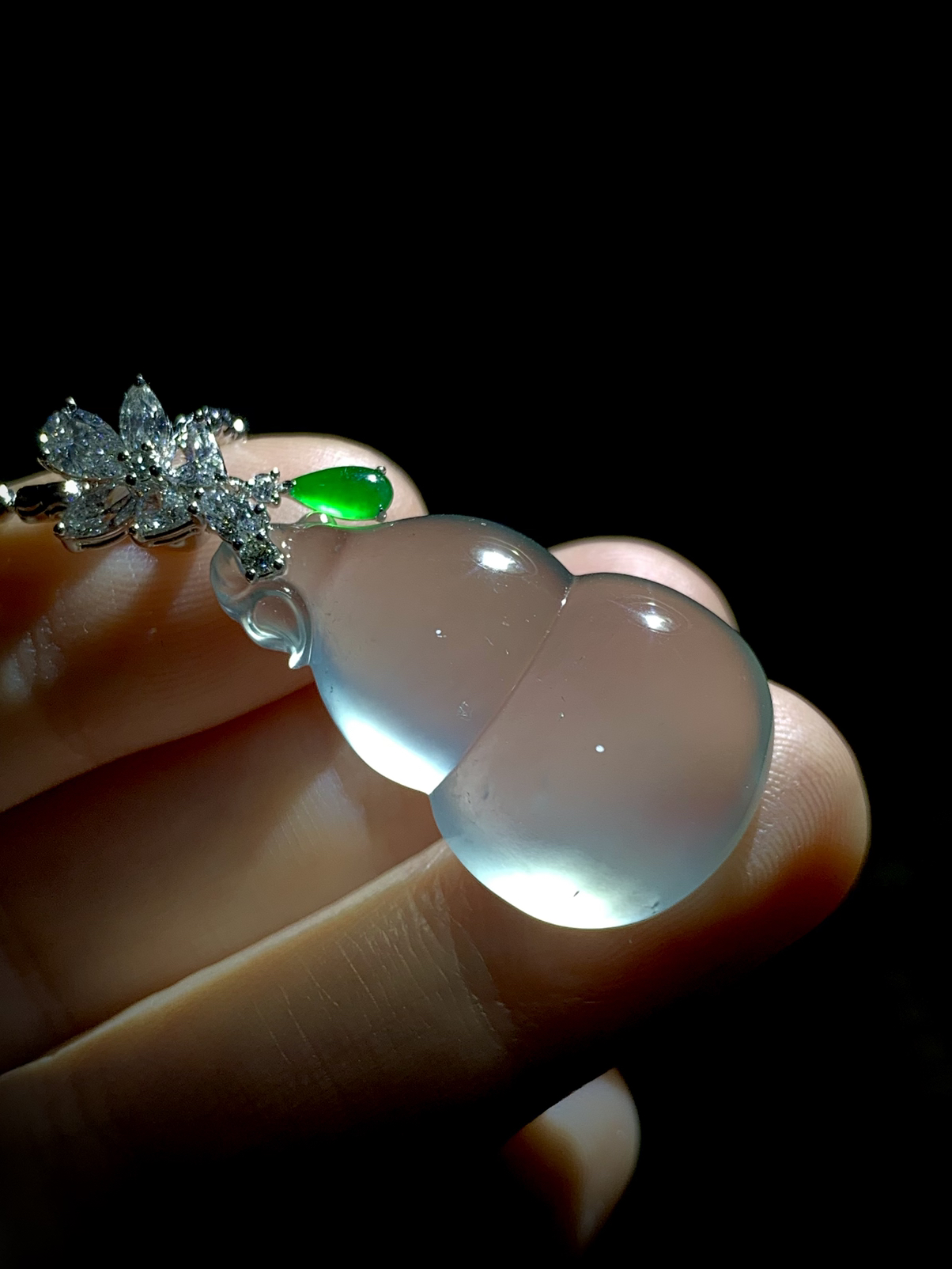 【镶嵌新品】 高品质玻璃种葫芦,40.5-裸石30.2-18-8.5mm, 18K金,南非钻,翡翠绿