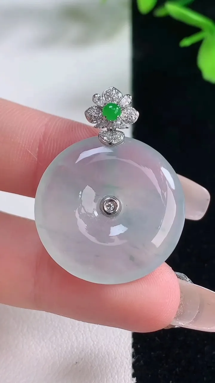 天然A货翡翠种飘花平安扣吊坠,尺寸29.2-4.7,重量:6.72g 1月5日