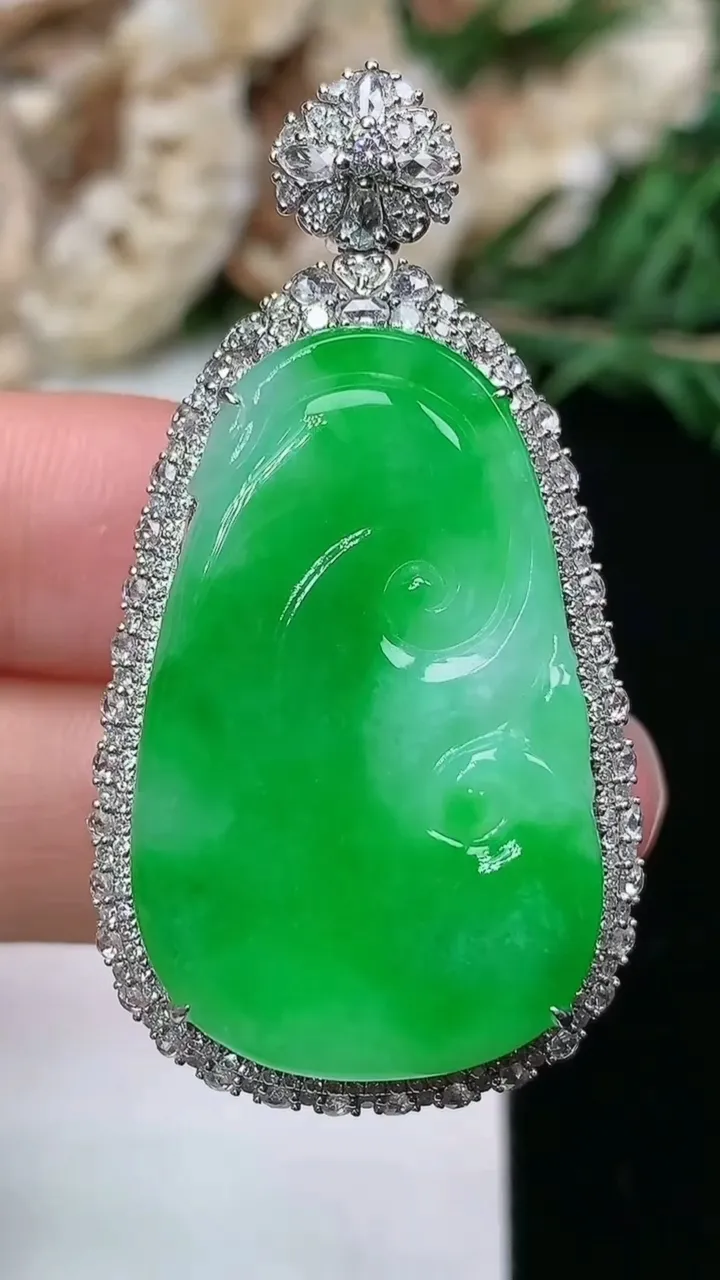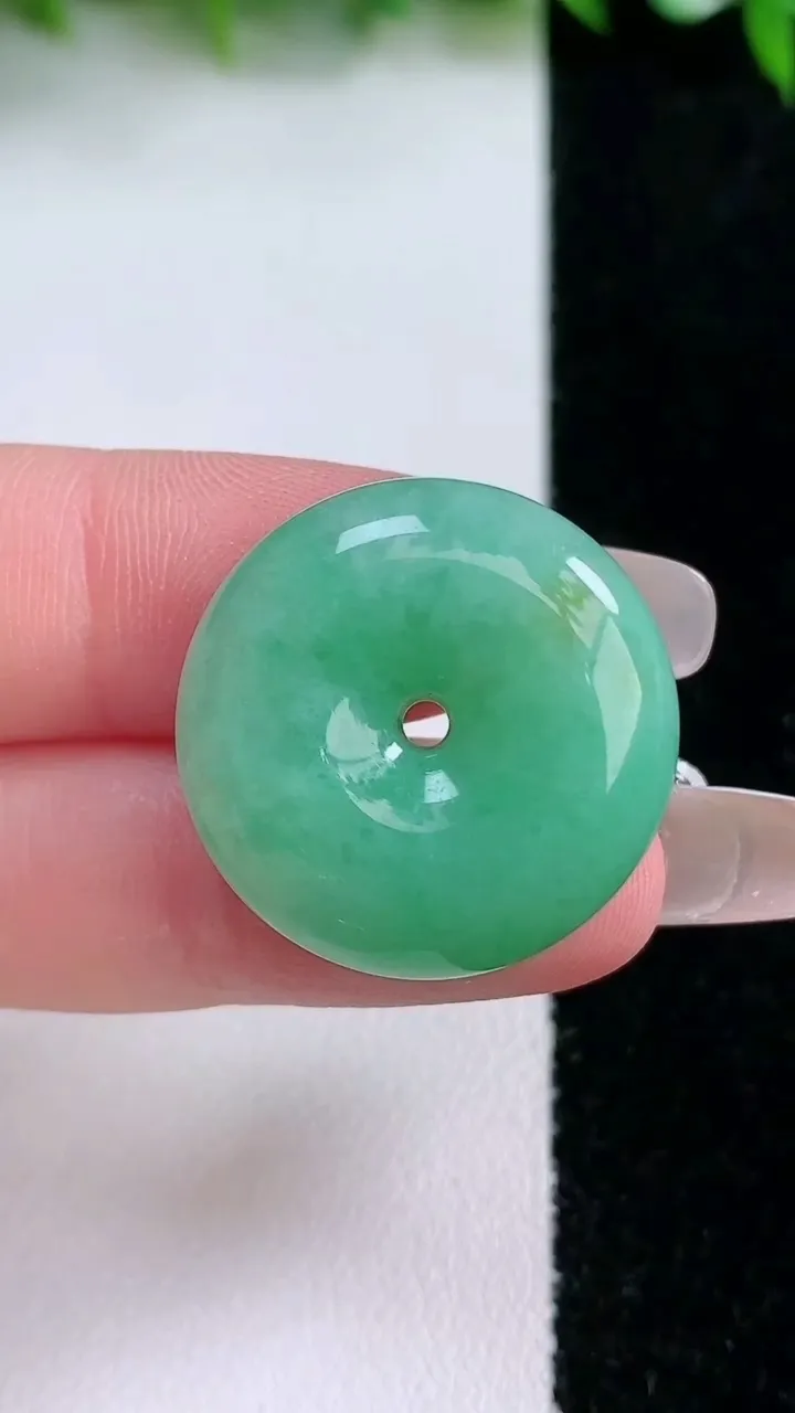 天然A货翡翠无事牌吊坠,尺寸52.6-39.8-5.5,重量:36.52g 1月23日
